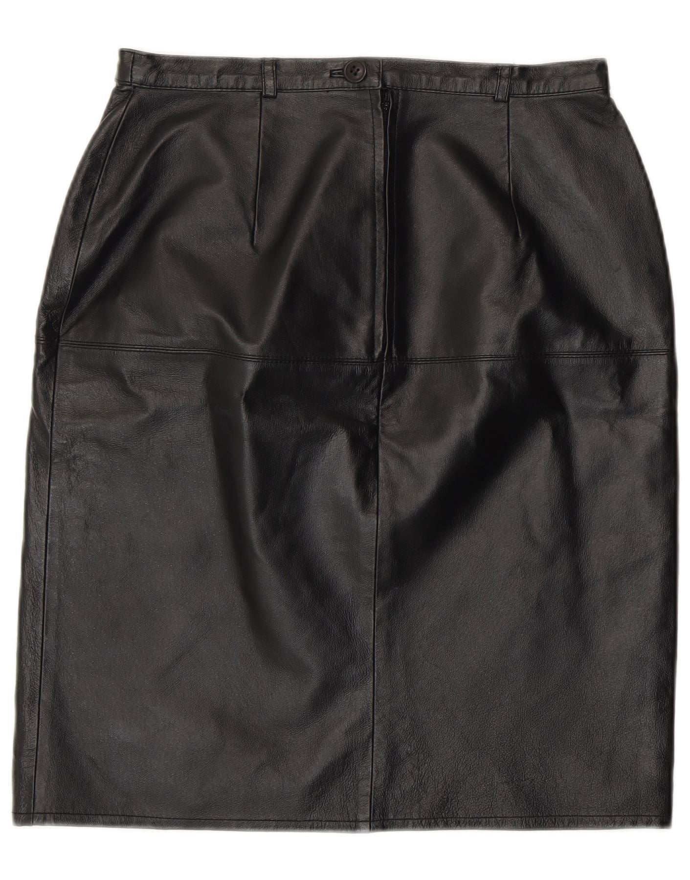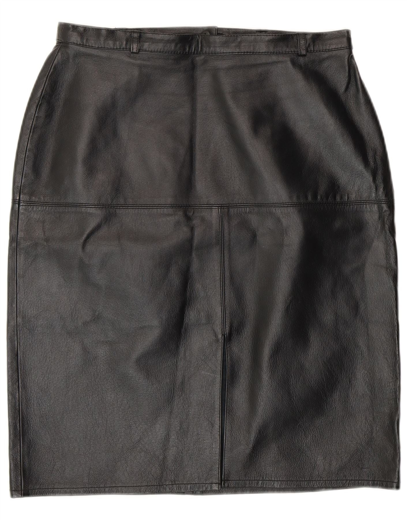 Vintage Womens Leather Pencil Skirt UK 12 Medium W28 Black Leather
