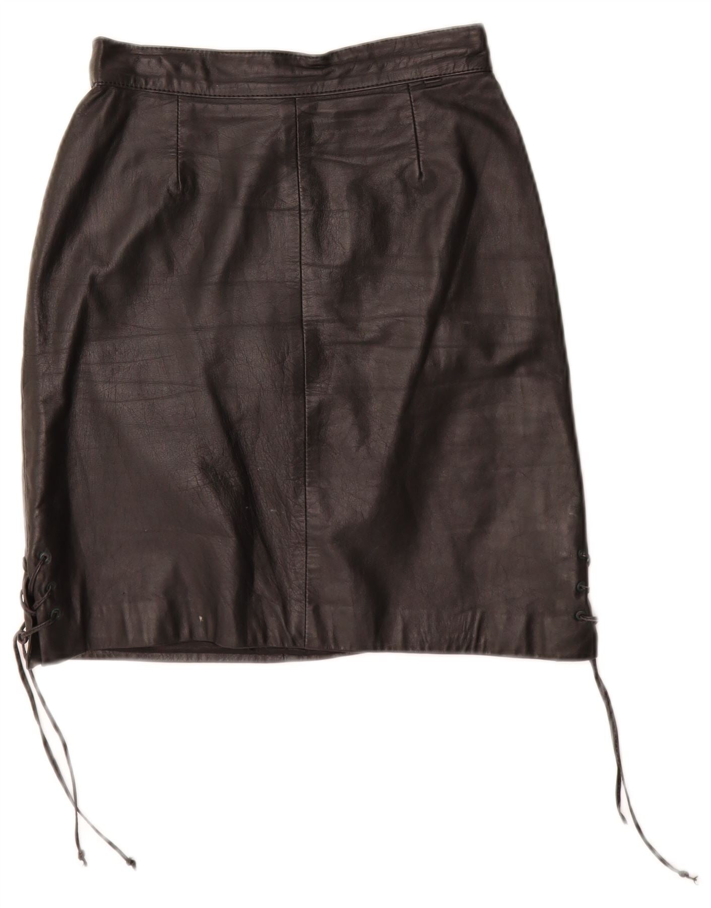 VINTAGE Womens Leather Skirt EU 34 XS W24 Black Leather