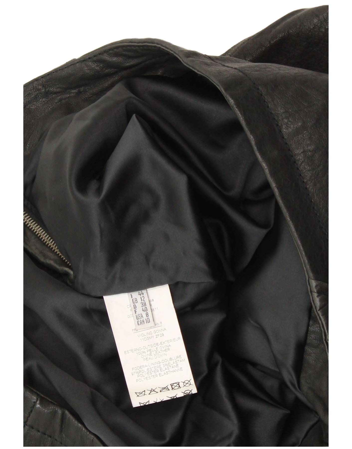 VINTAGE Womens Leather Skirt UK 12 Medium W30 Black Patchwork Leather