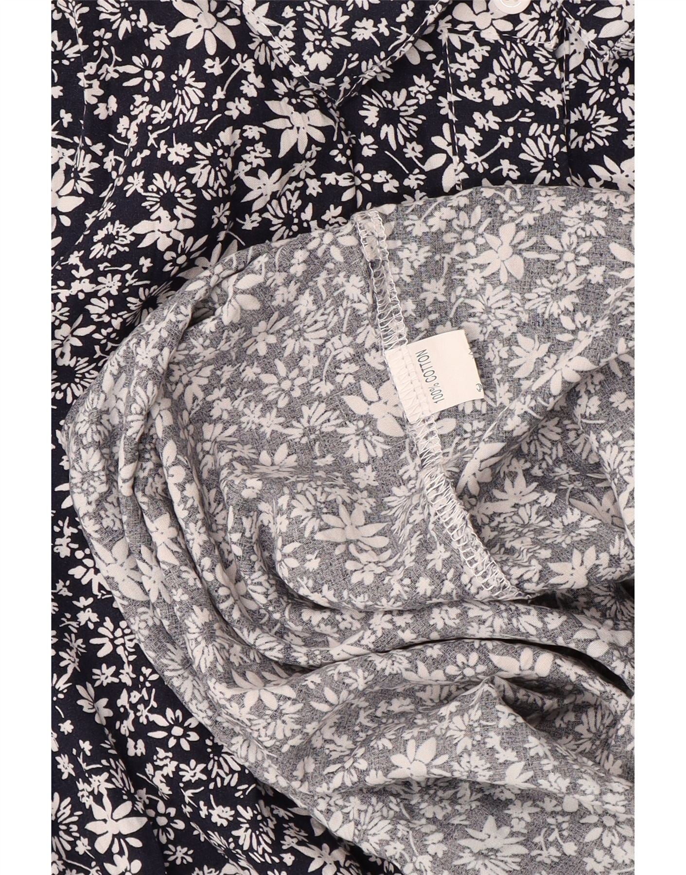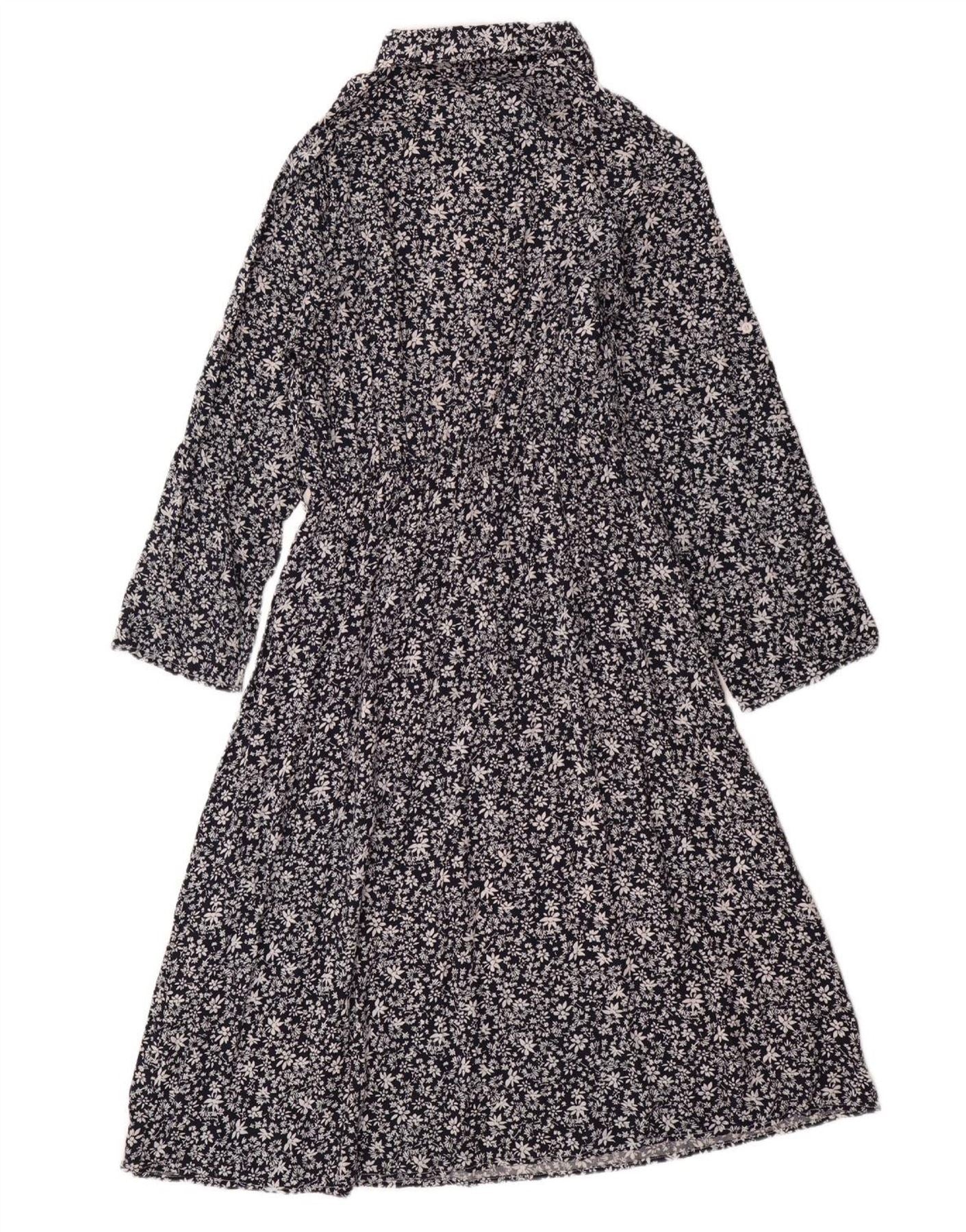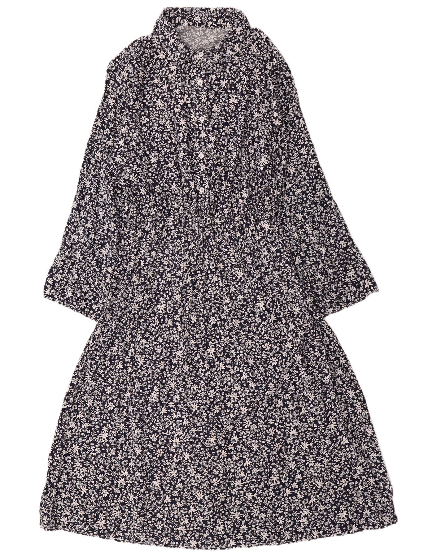 VINTAGE Womens Long Sleeve Maxi Dress UK 14 Large Navy Blue Floral Cotton