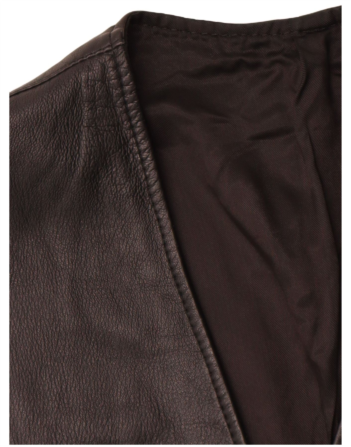 - AI Description: This Vintage womens waistcoat is crafted from supple black leather, offering a smooth, luxurious feel. It features a classic V-neckline and a sleeveless design. The regular fit ensures comfortable wear. A five-button front closure provides a traditional touch. Practical pockets are integrated into the design, enhancing its classic style.