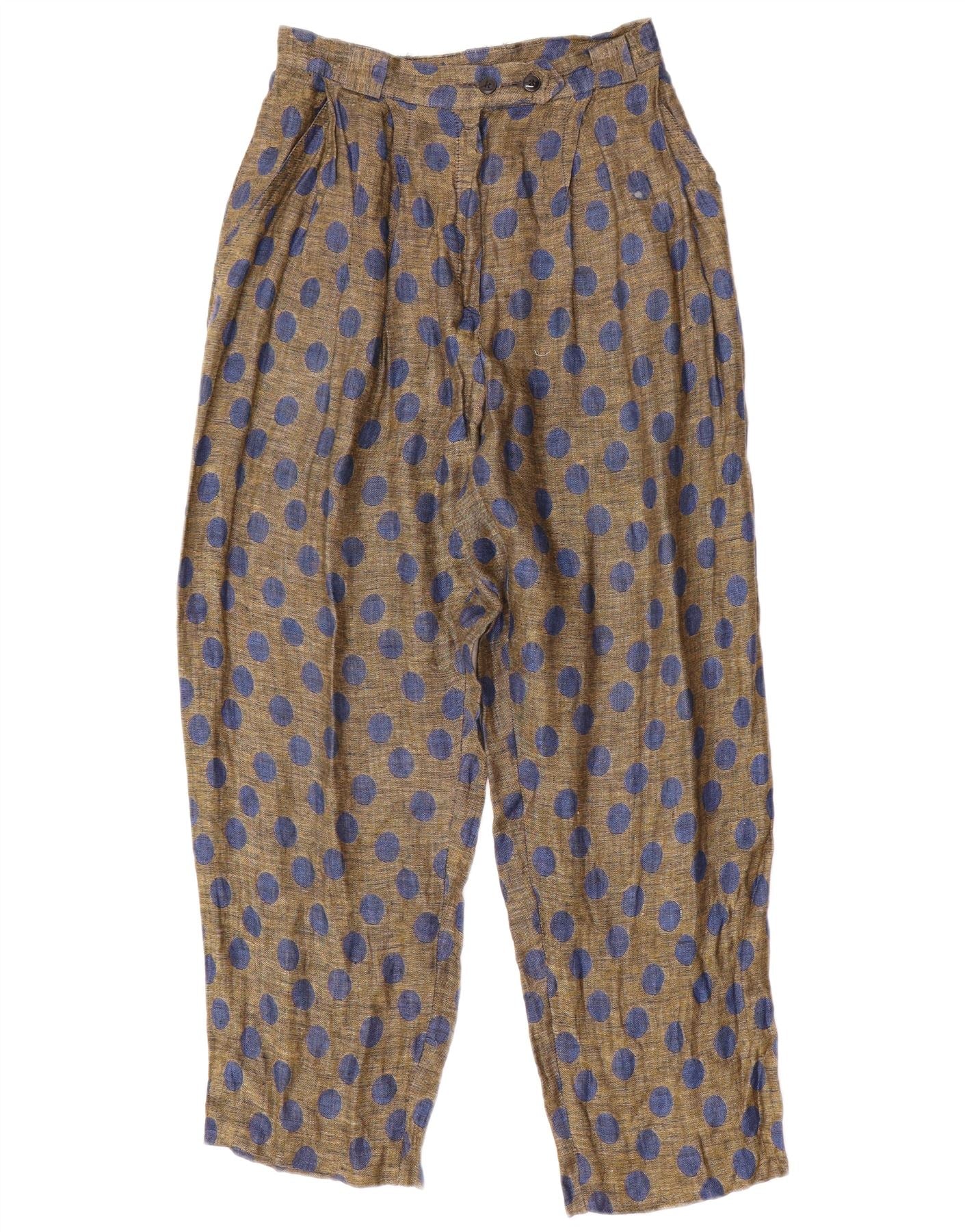VINTAGE Womens Loose Fit Casual Trousers W26 L29 Beige Polka Dot Linen