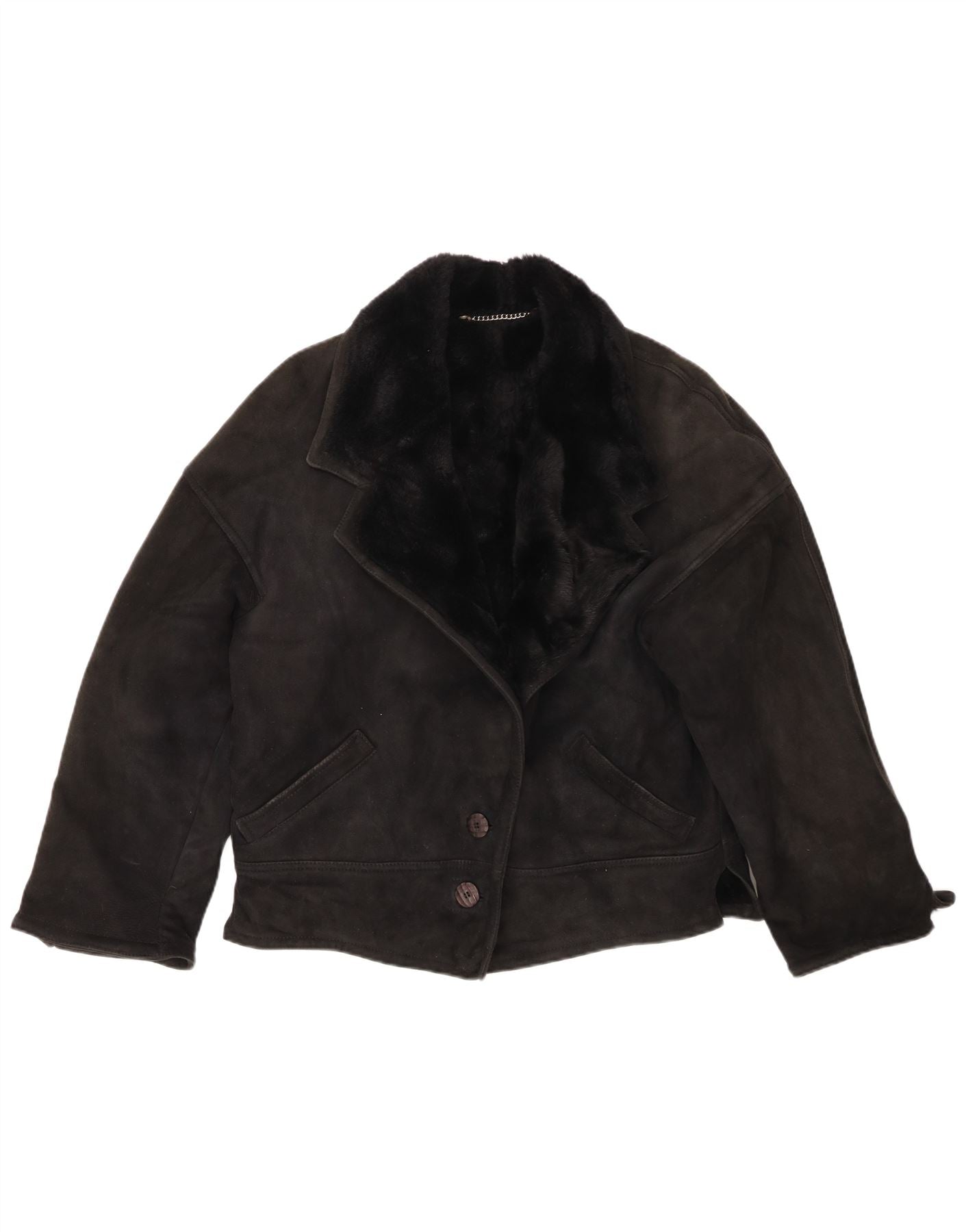 Home > Women's > Depop Clothing > VINTAGE Womens Loose Fit Shearling Jacket IT 44 Medium Black Shearling
