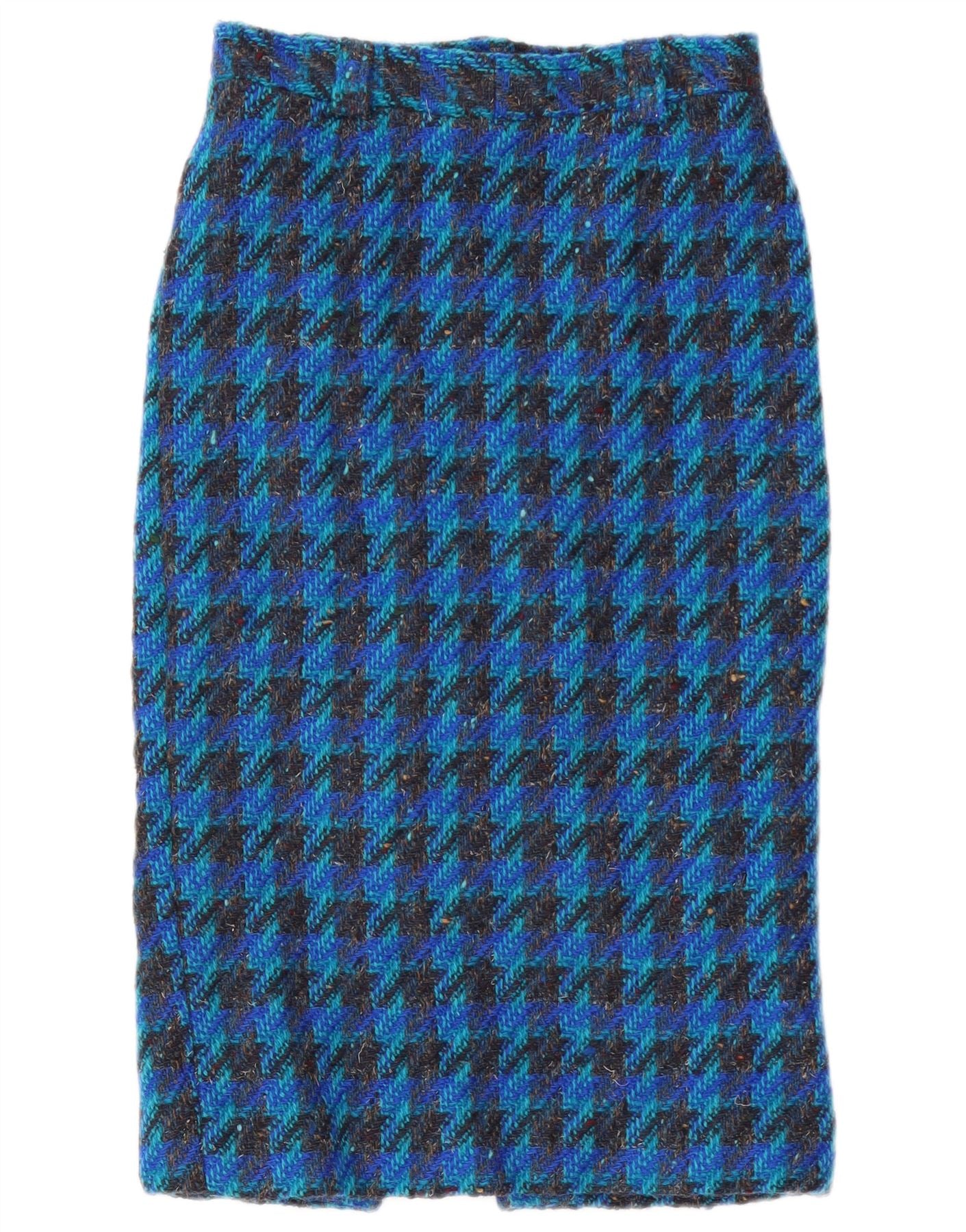 VINTAGE Womens Midi Skirt W28 Medium Blue Houndstooth