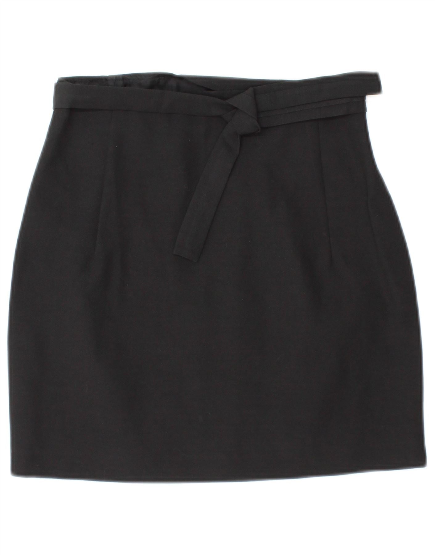 VINTAGE Womens Mini Wrap Skirt IT 42 Medium W26 Black Wool