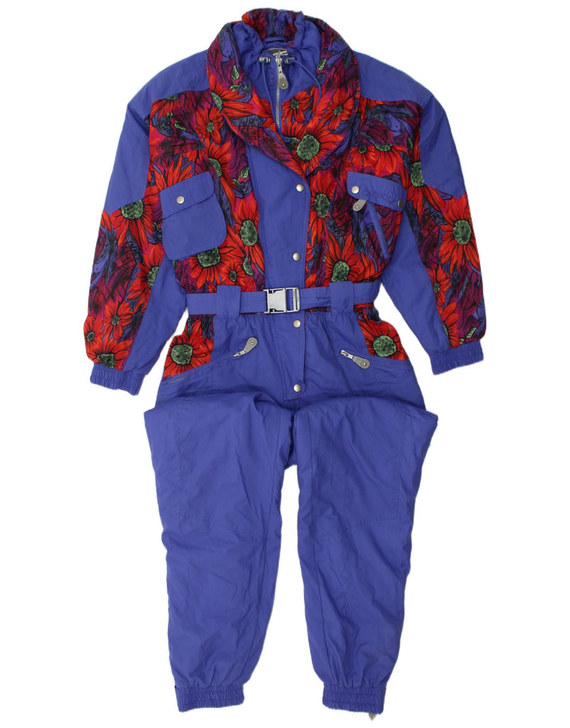 VINTAGE Womens Motorcycle Ski Jumpsuit EU 40 Medium Blue Floral Polyester