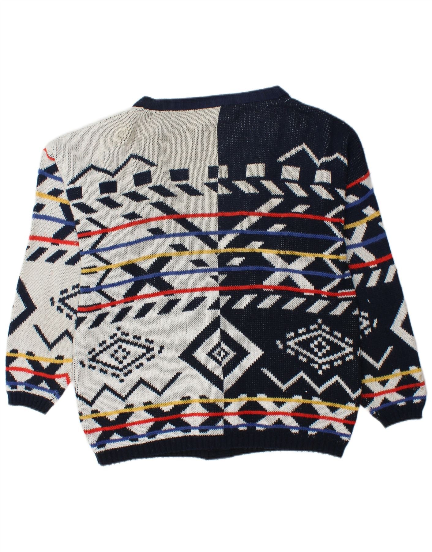 VINTAGE Womens Oversized Cardigan Sweater UK 16 Large Navy Blue Geometric