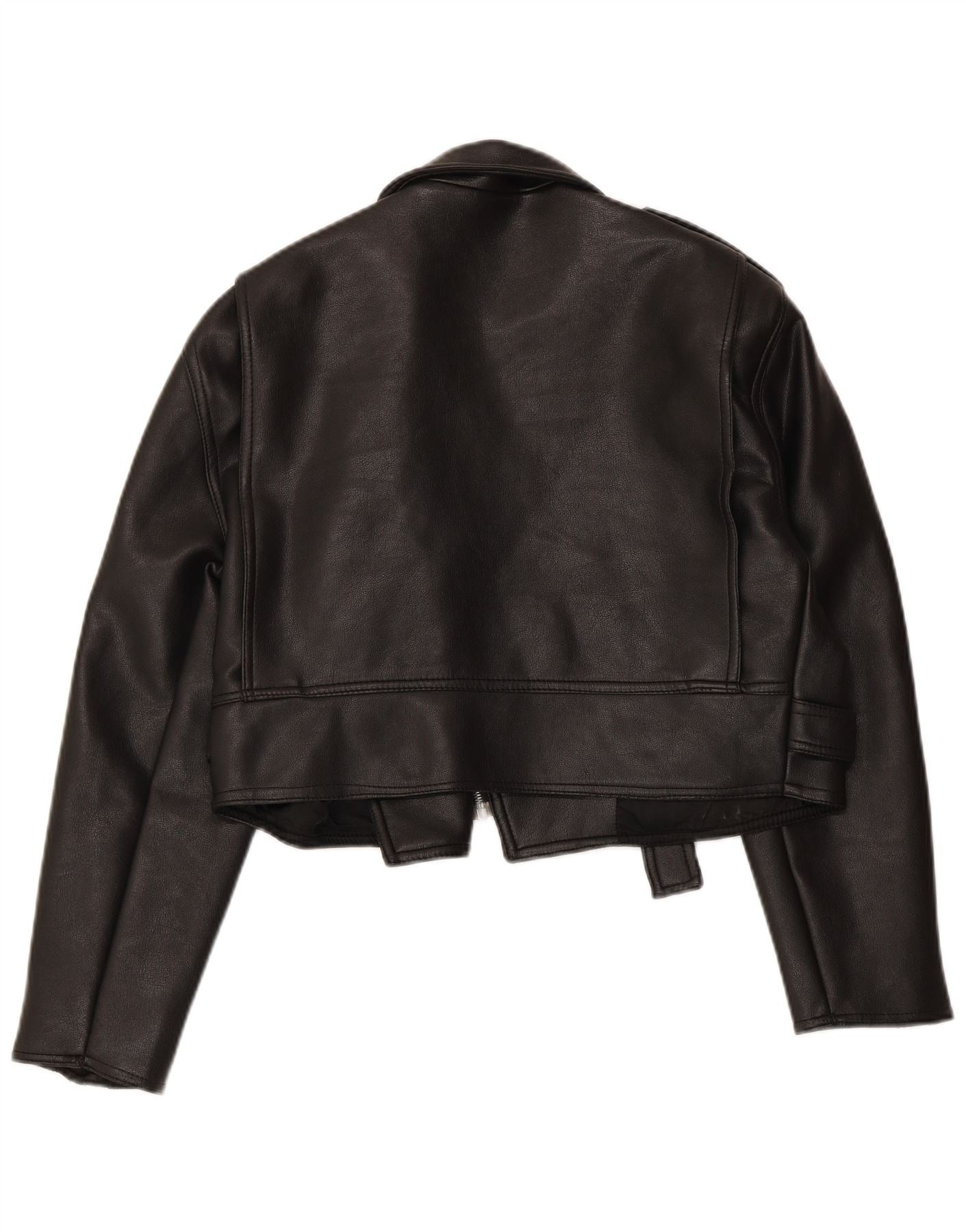 VINTAGE Womens Oversized Crop Leather Biker Jacket UK 10 Small Black