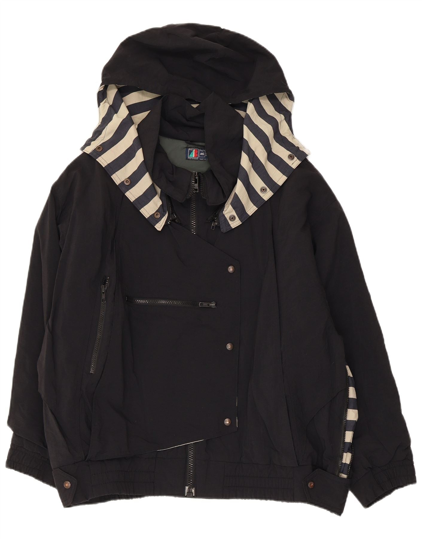 VINTAGE Womens Oversized Hooded Windbreaker Jacket IT 46 Large Black Nylon