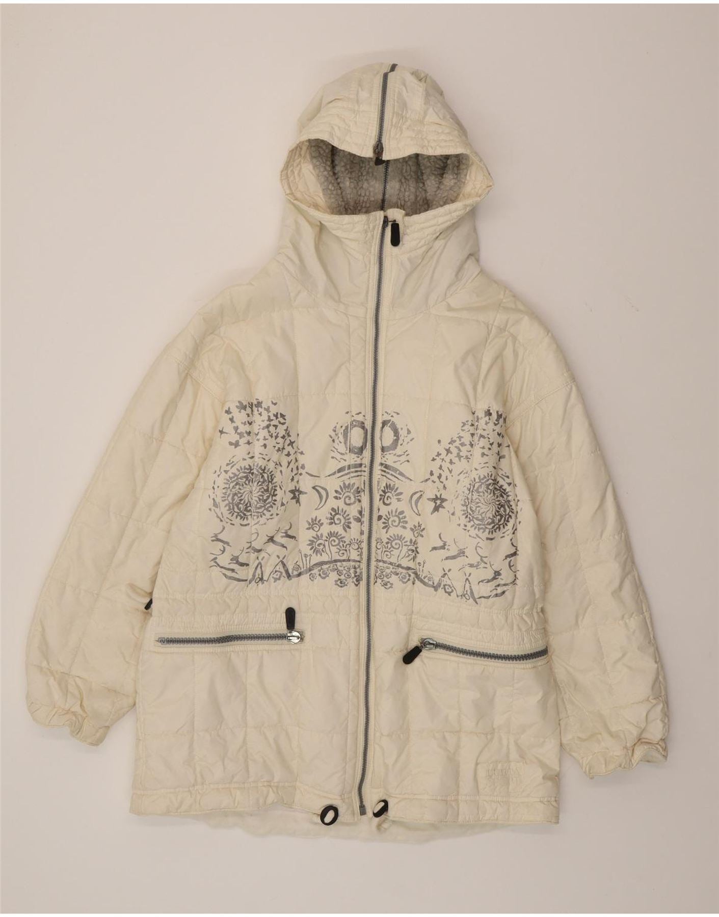 Vintage Womens Oversized Padded Coat UK 10 Small White Paisley Polyester