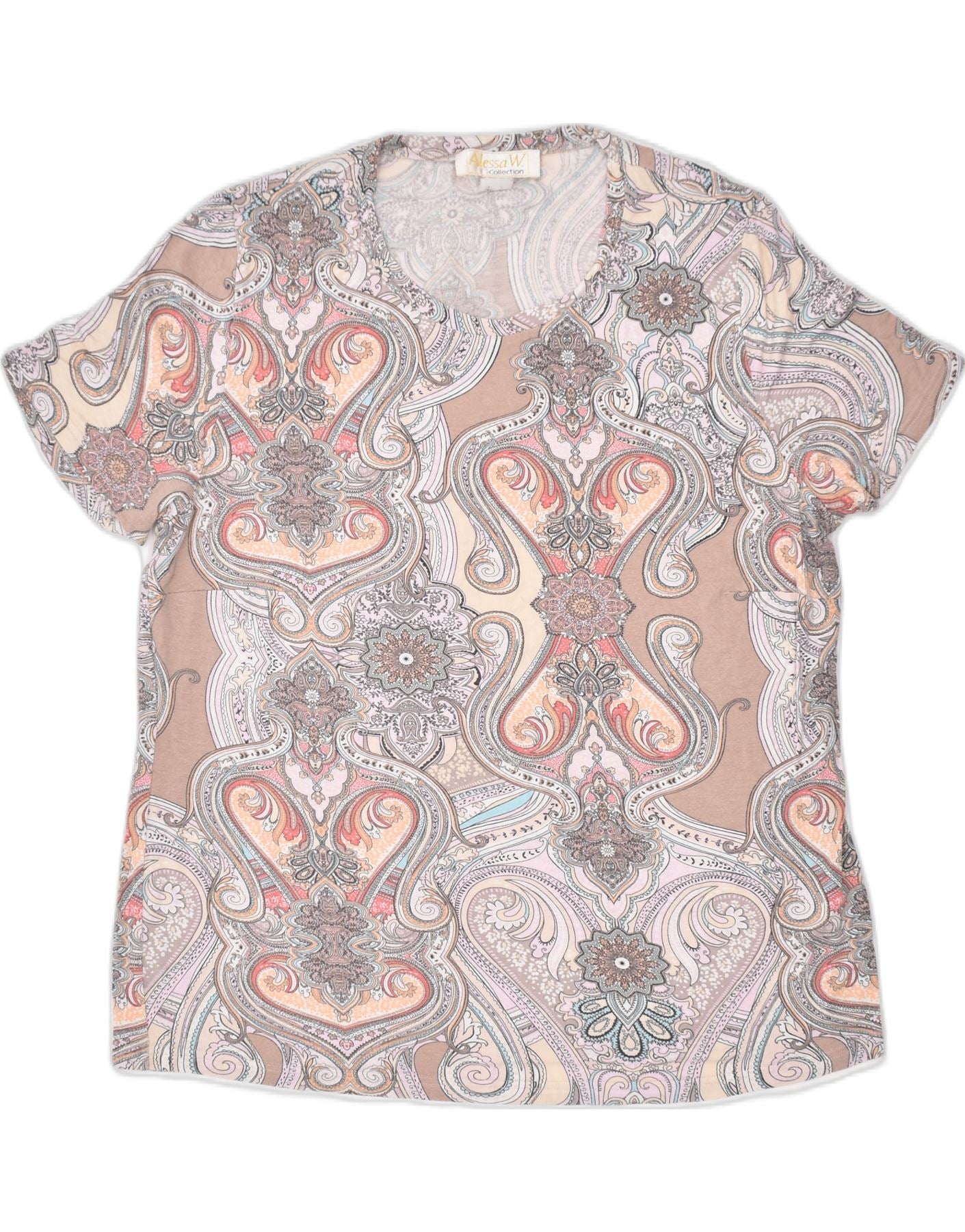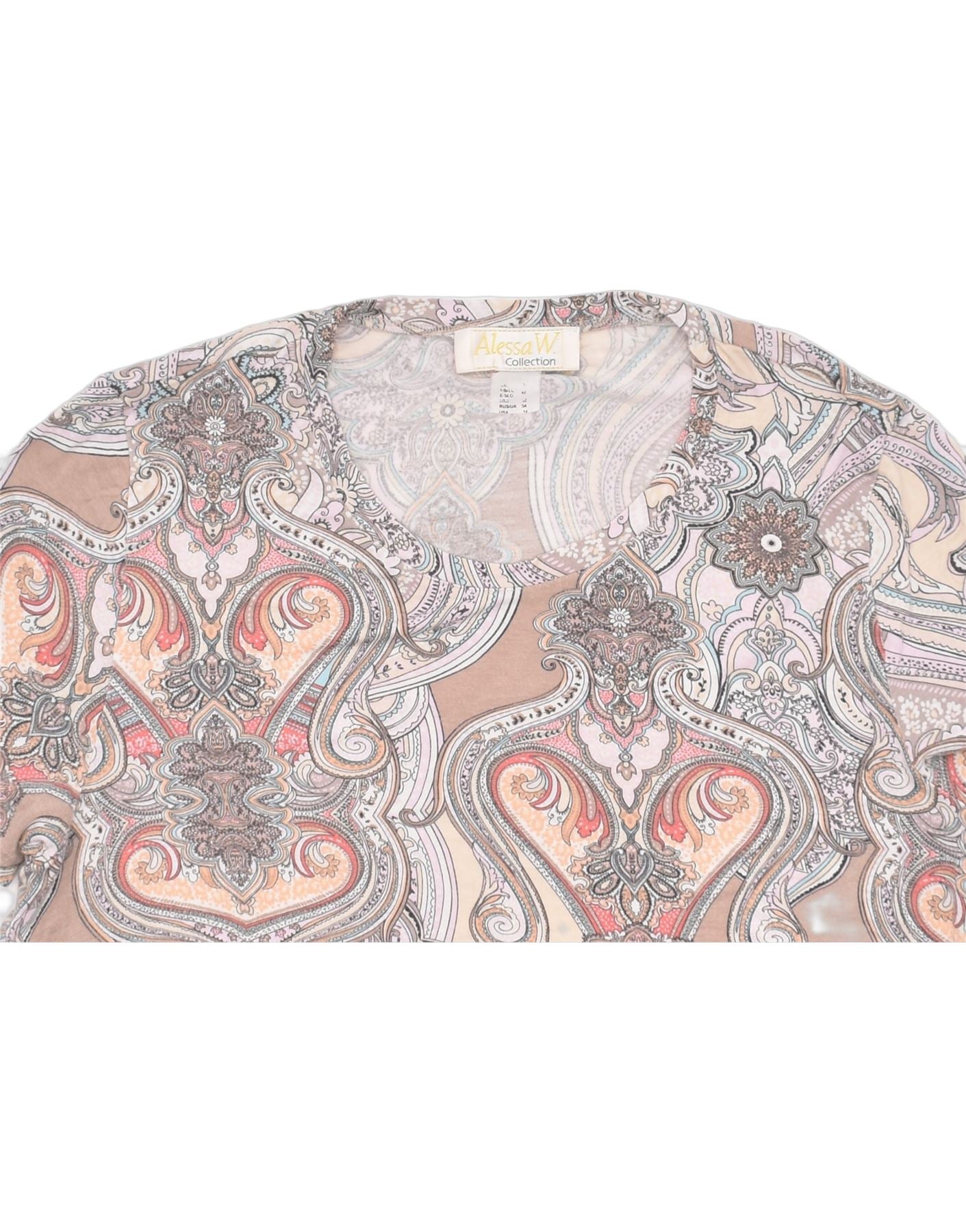 VINTAGE Womens Oversized T-Shirt Top UK 14 Large Grey Geometric Cotton