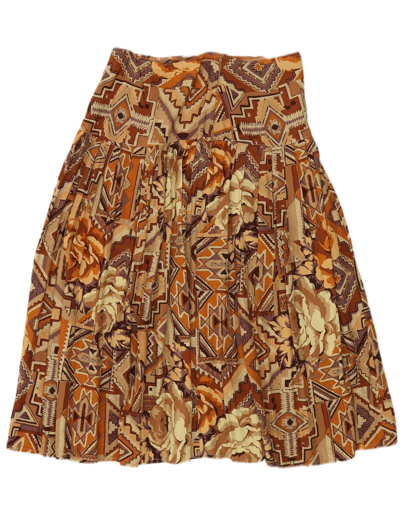 VINTAGE Womens Pleated Skirt Medium W30 Brown Patchwork Cotton