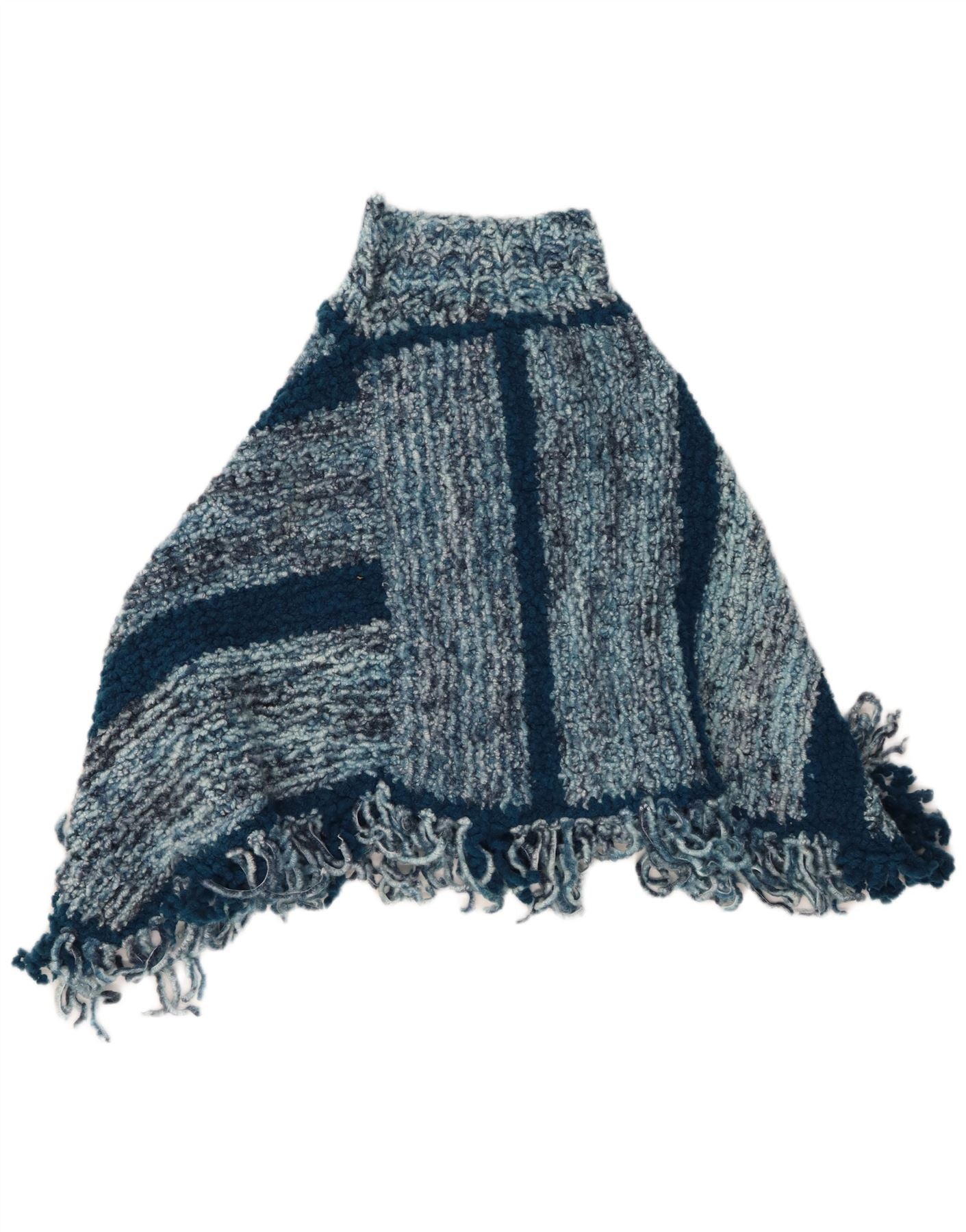 VINTAGE Womens Poncho Jumper One Size Blue Striped
