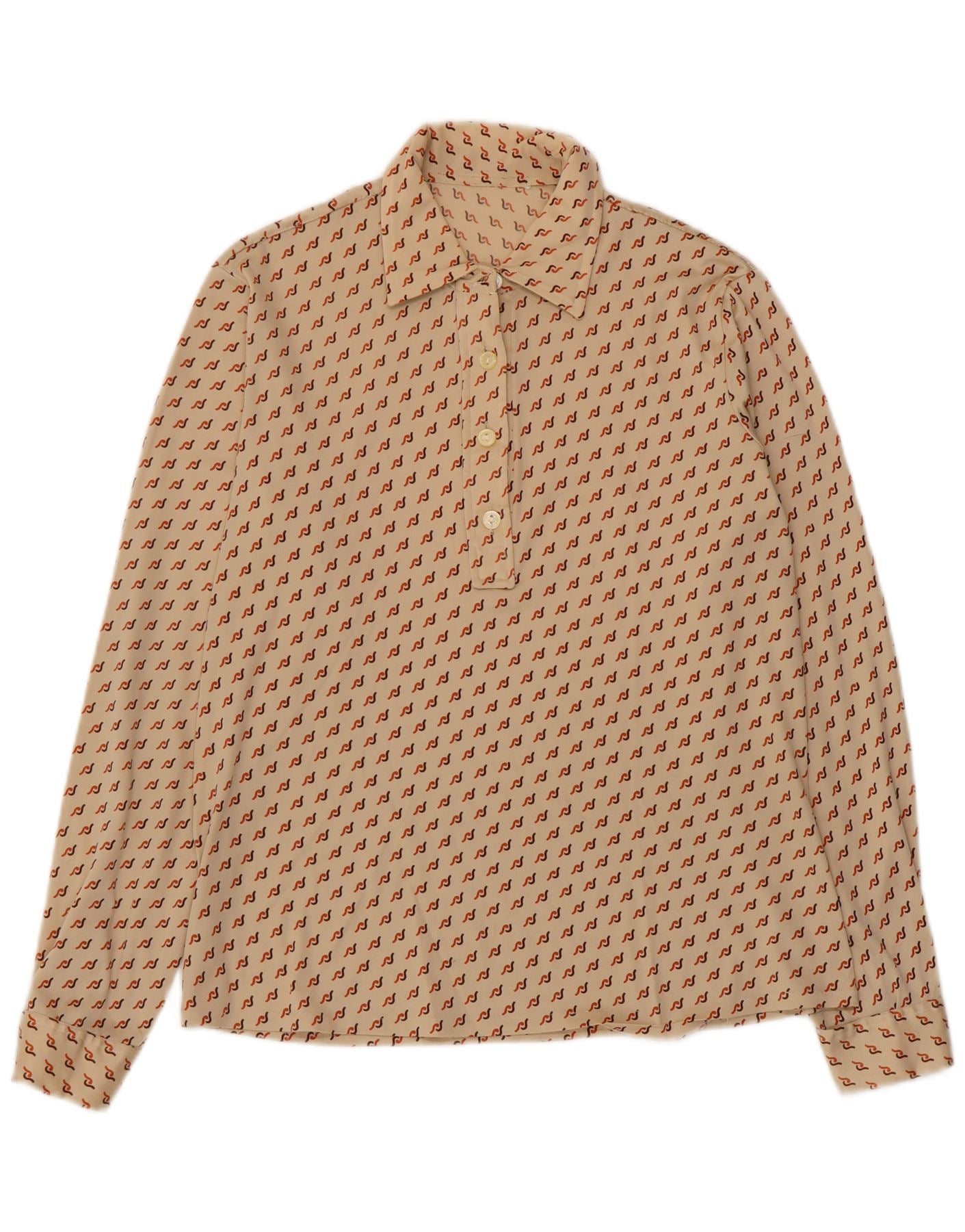 VINTAGE Womens Pullover Shirt UK 16 Large Beige Geometric