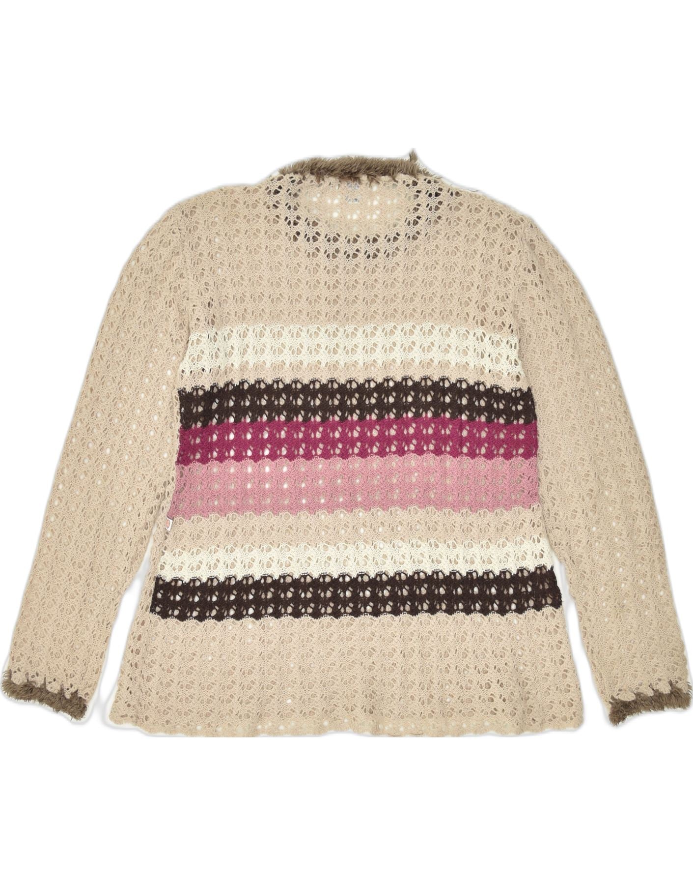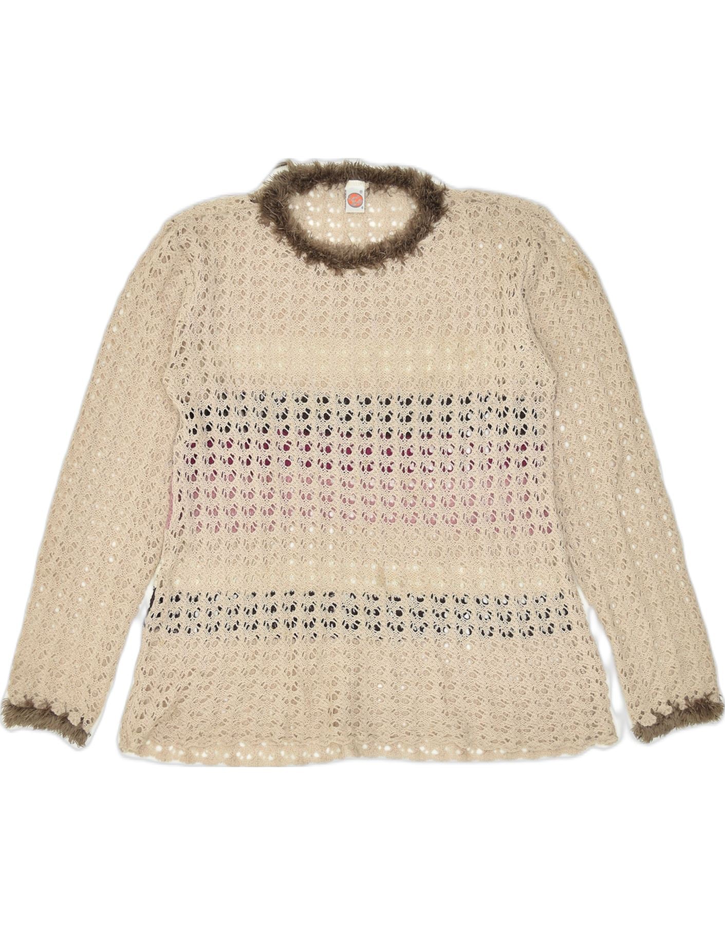 VINTAGE Womens See Through Crew Neck Jumper Sweater UK 20 2XL Beige Nylon