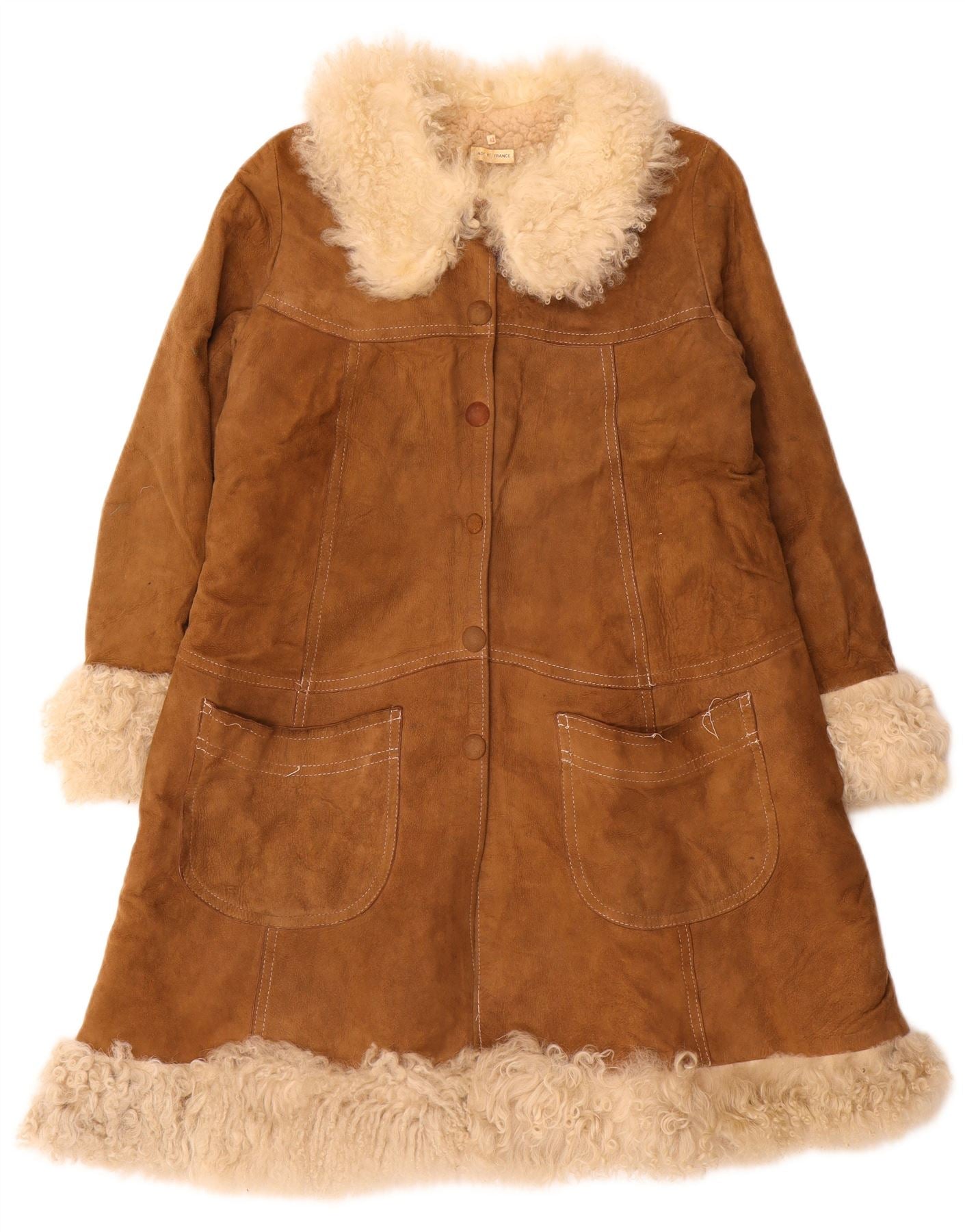VINTAGE Womens Shearling Coat EU 42 Large Brown