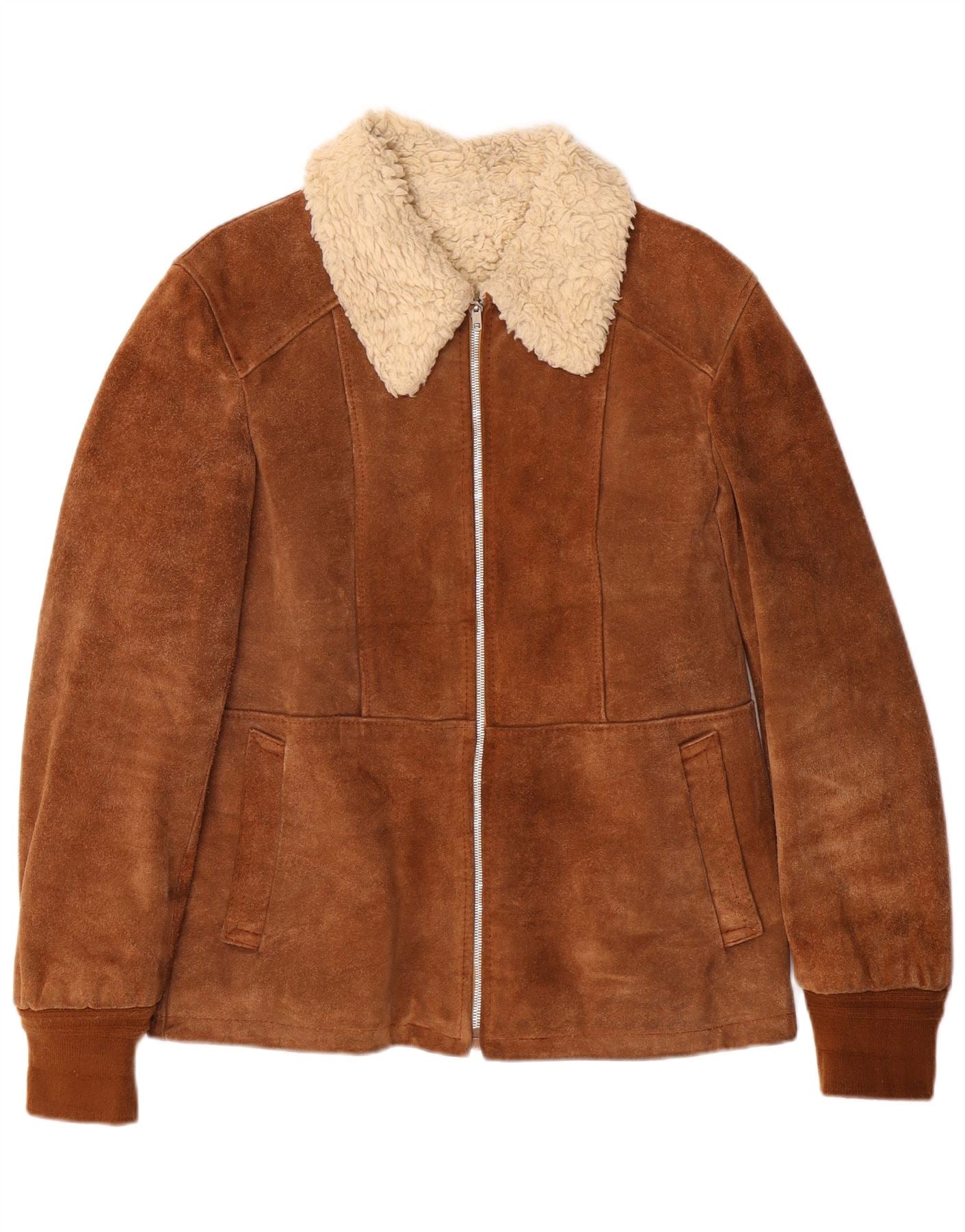 VINTAGE Womens Shearling Jacket IT 46 Large Brown Leather