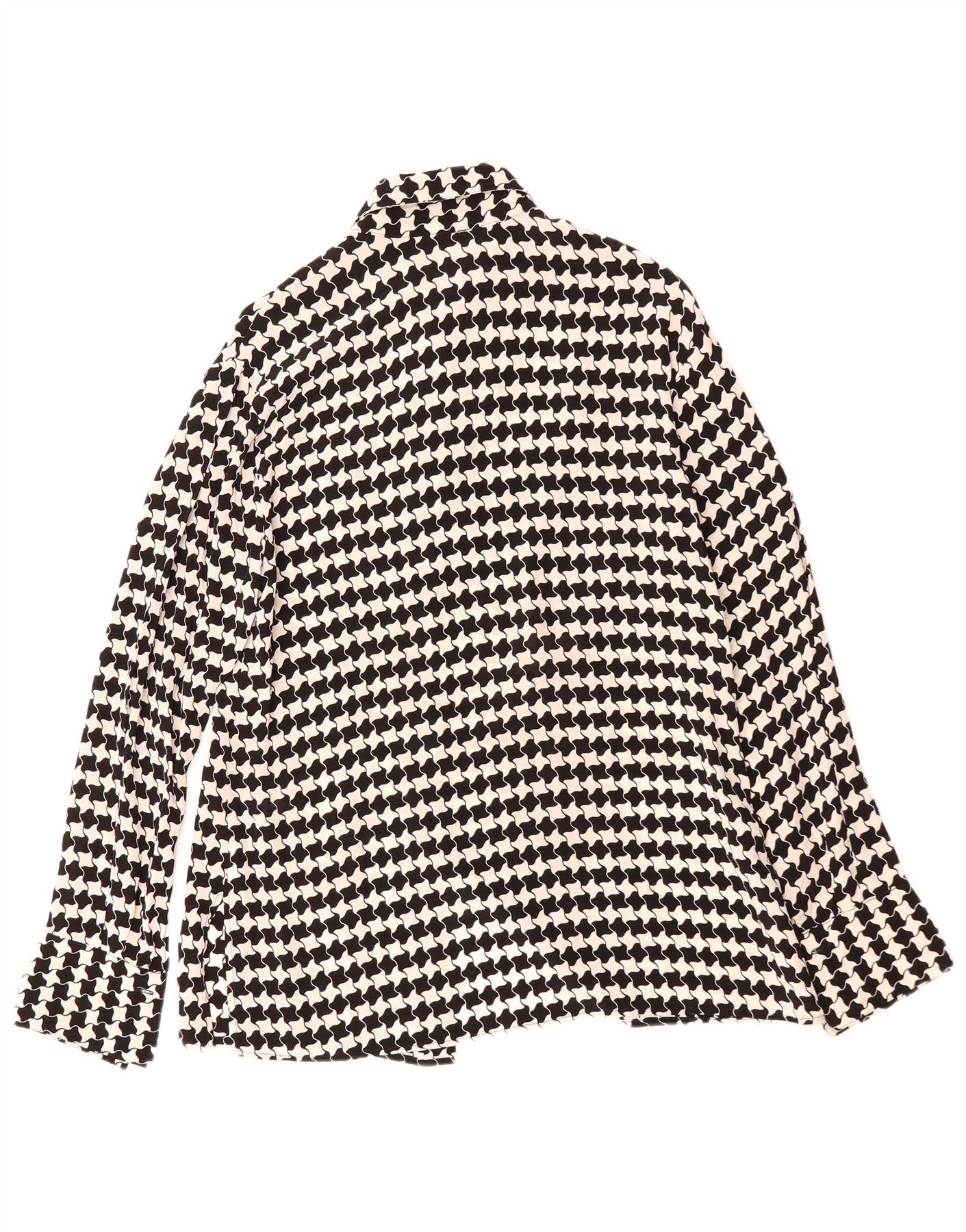 VINTAGE Womens Shirt Blouse IT 46 Large Black Houndstooth Viscose