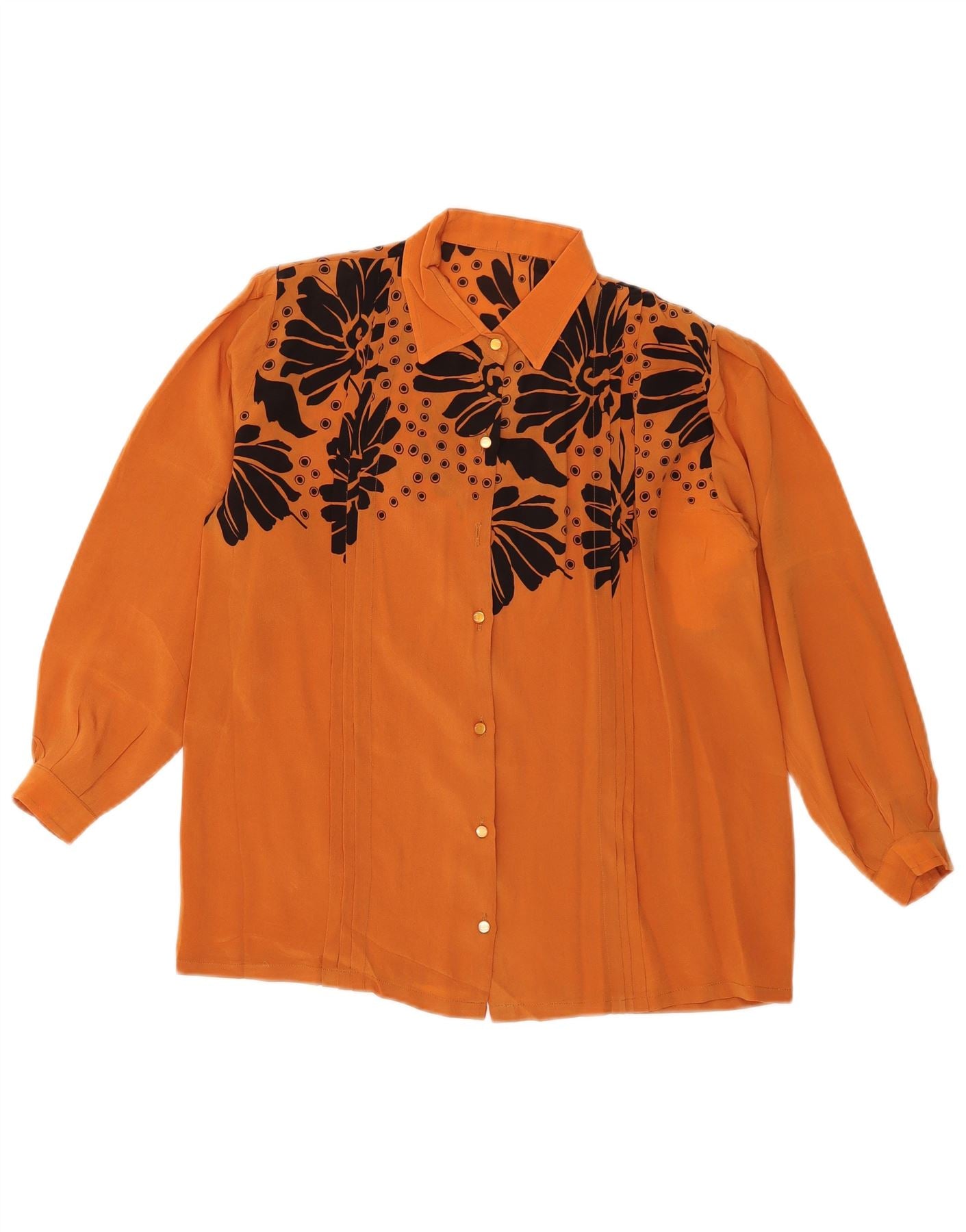VINTAGE Womens Shirt Blouse UK 16 Large Orange Floral