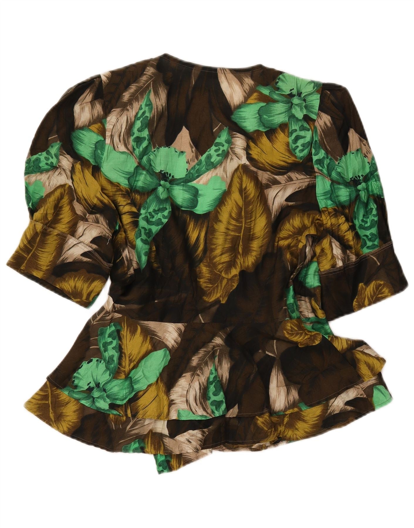 VINTAGE Womens Short Sleeve Shirt Blouse IT 42 Medium Khaki Floral