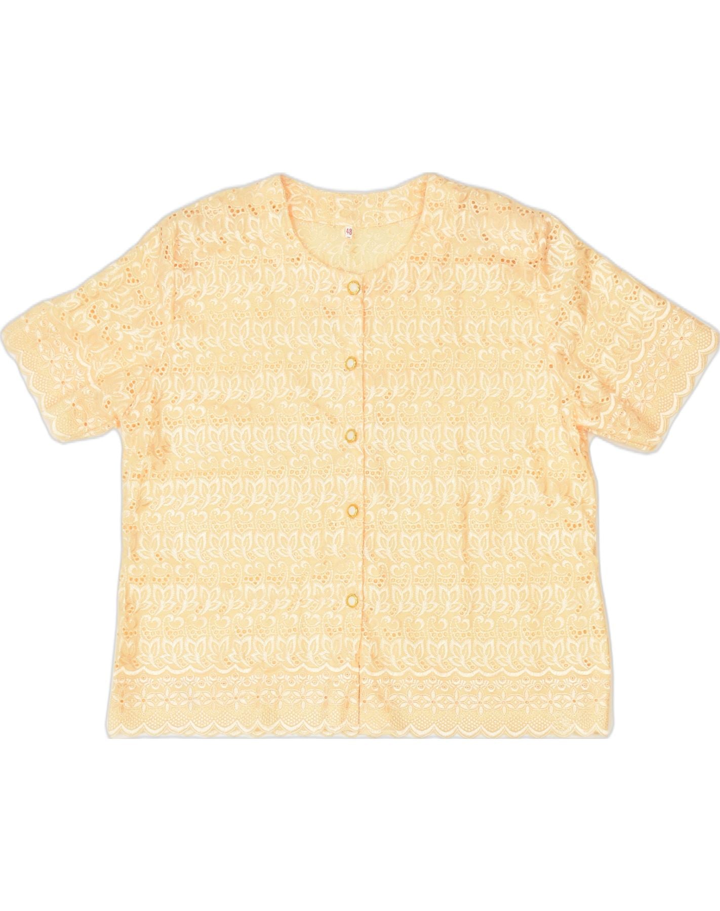VINTAGE Womens Short Sleeve Shirt Blouse IT 48 XL Yellow Floral