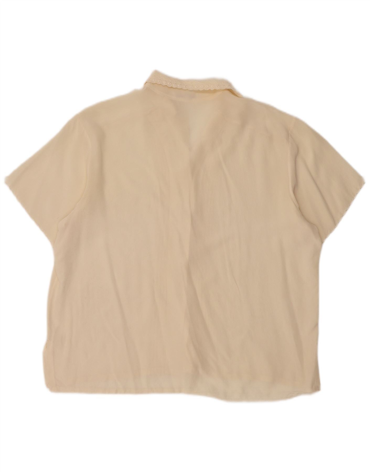 Vintage Womens Short Sleeve Shirt Blouse UK 14 Medium Off White Silk