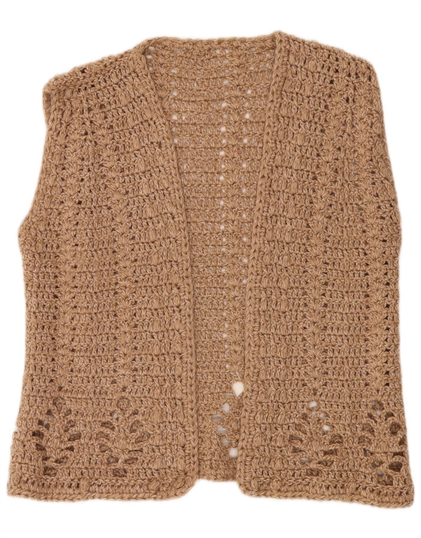 VINTAGE Womens Sleeveless Crochet Cardigan Sweater UK 14 Large Beige