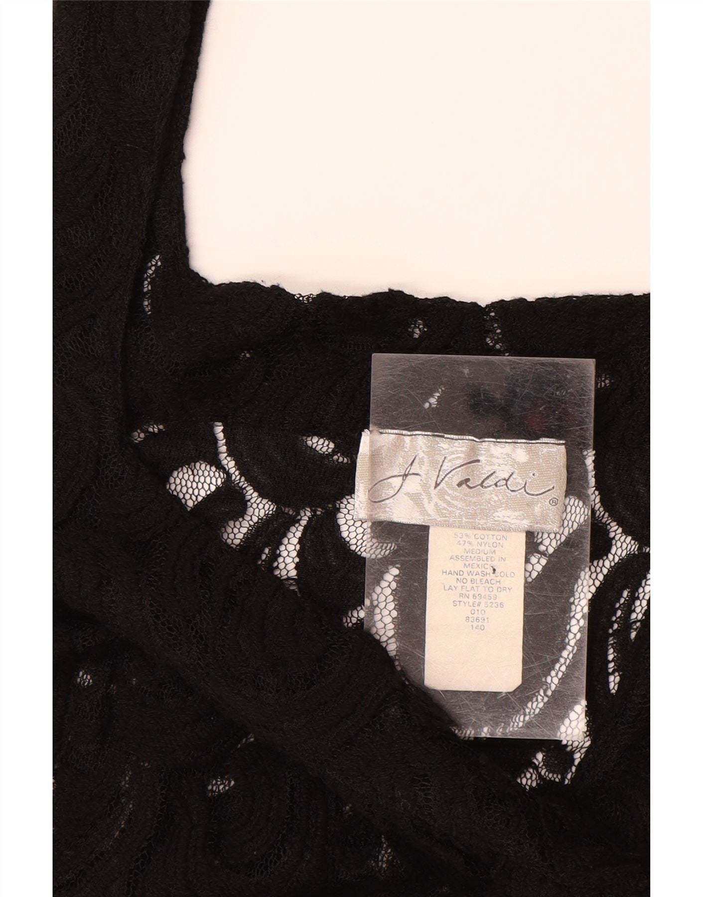 VINTAGE Womens Sleeveless See Through Tunic Top UK 12 Medium Black Floral