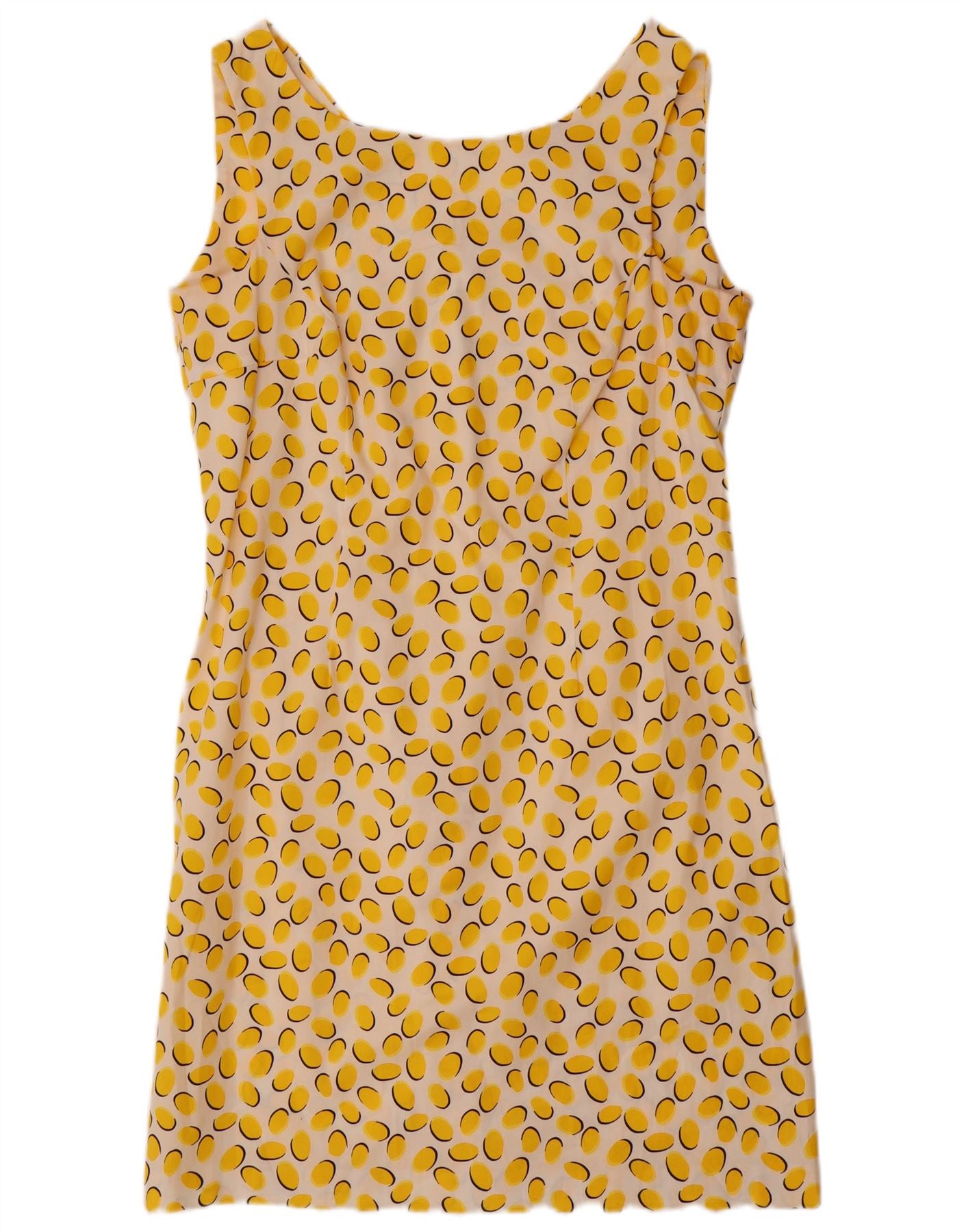 VINTAGE Womens Sleeveless Sheath Dress UK 20 2XL Yellow Spotted Cotton