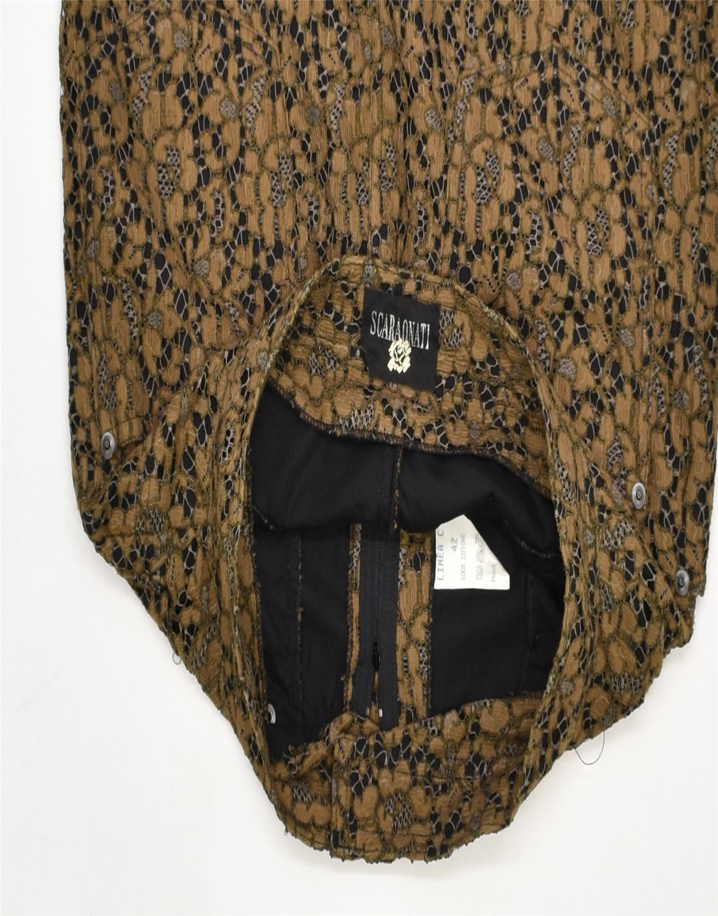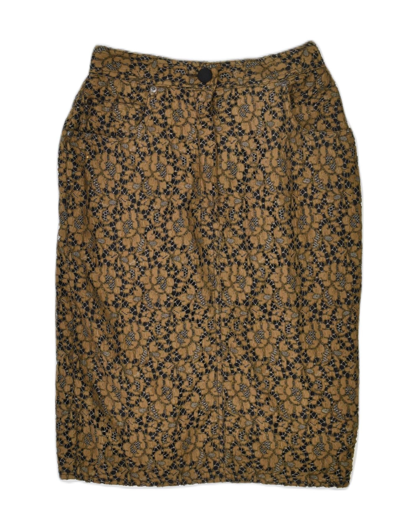 VINTAGE Womens Slim Pencil Skirt IT 42 Medium W26 Brown Floral Cotton