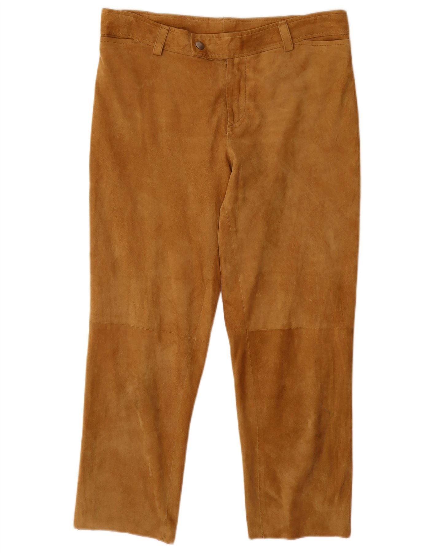 VINTAGE Womens Suede Cropped Trousers W32 L25 Brown