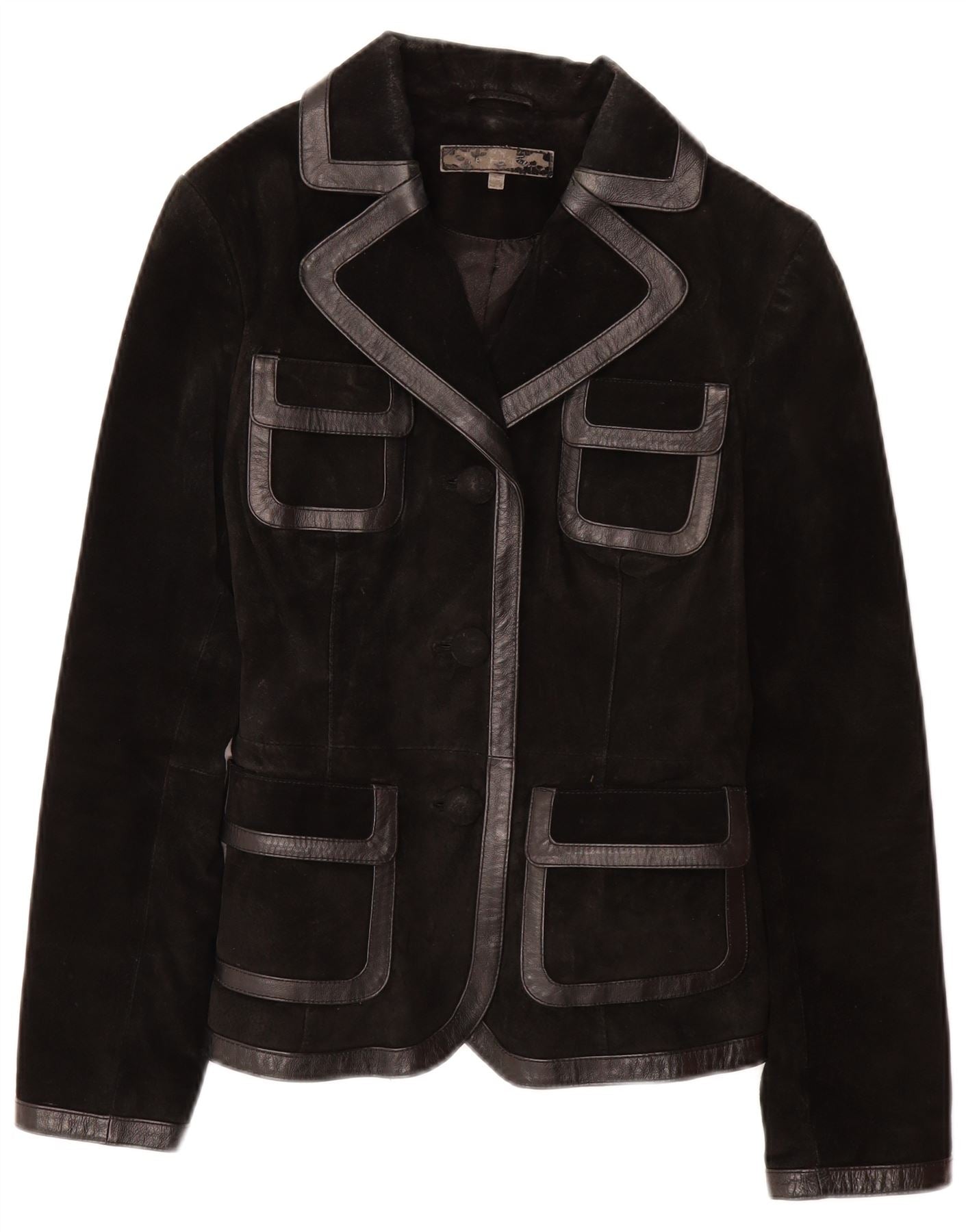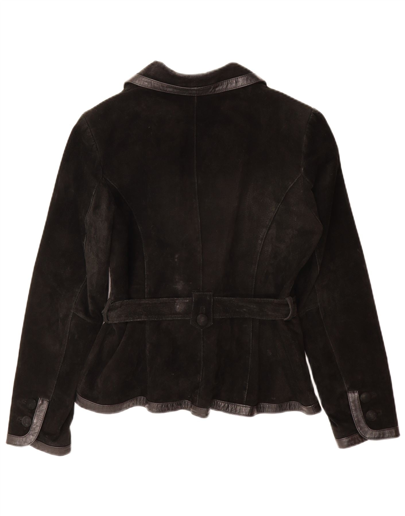 VINTAGE Womens Suede Jacket UK 12 Medium Black Leather