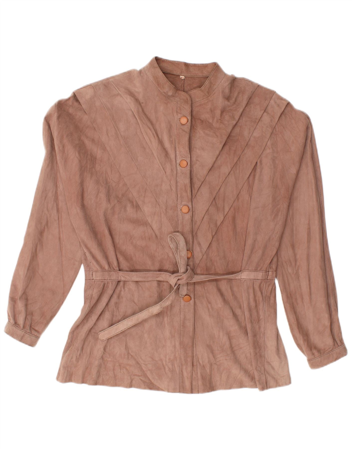 VINTAGE Womens Suede Shirt Blouse EU 44 XL Brown