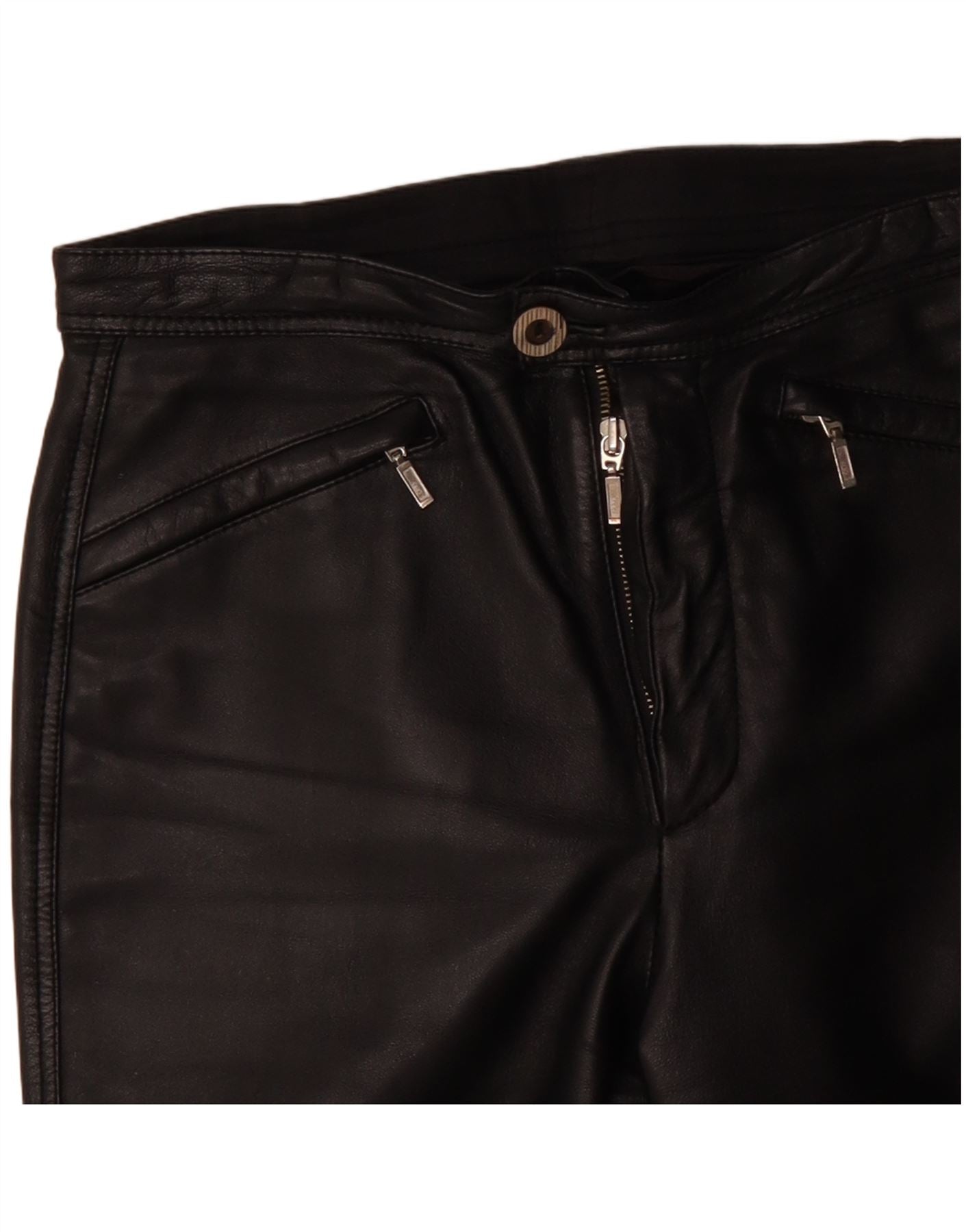 VINTAGE Womens Tapered Leather Trousers EU 38 Medium W30 L29 Black Leather