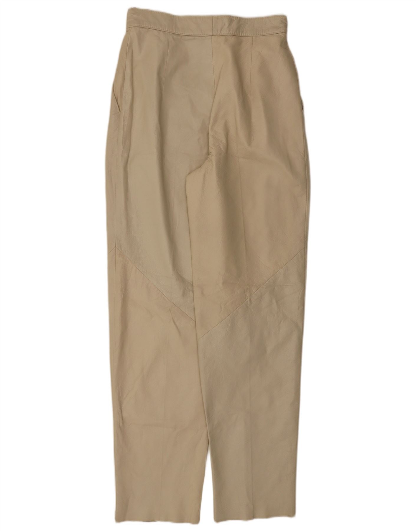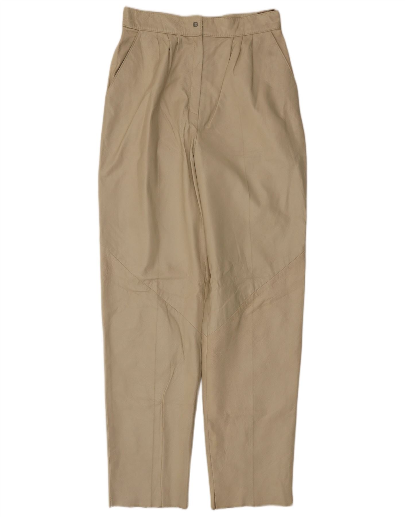 VINTAGE Womens Tapered Leather Trousers W26 L30 Beige