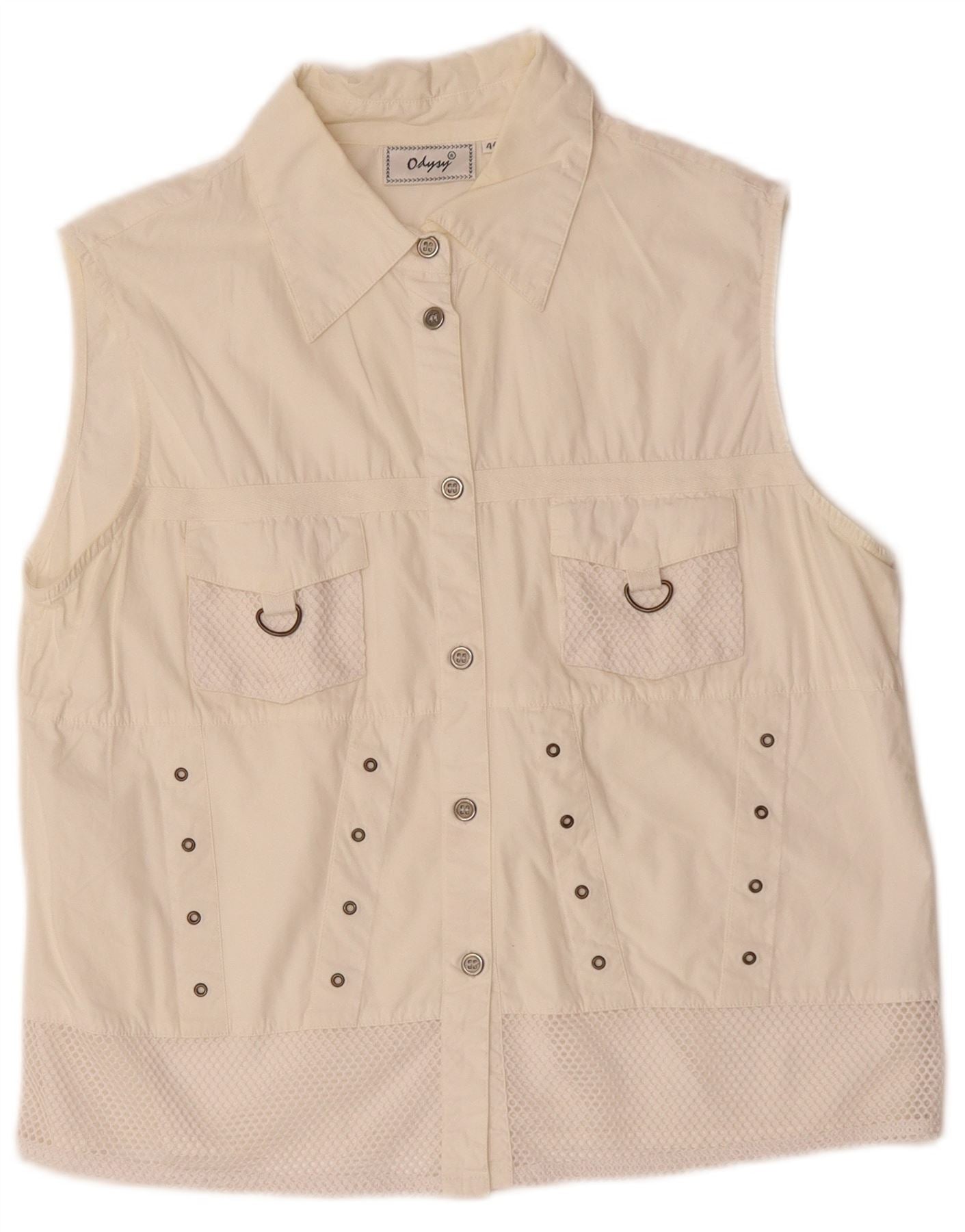 VINTAGE Womens Utility Gilet IT 44 Medium White Cotton
