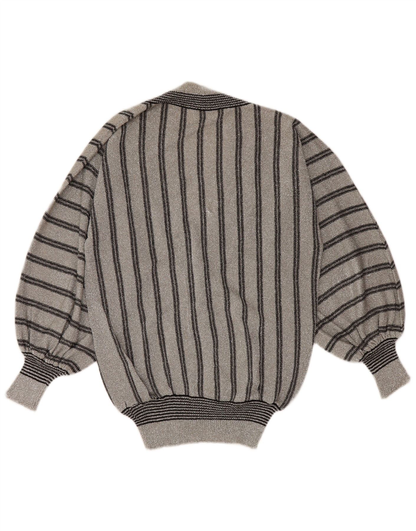 VINTAGE Womens V-Neck Jumper Sweater UK 12 Medium Grey Striped Synthetic