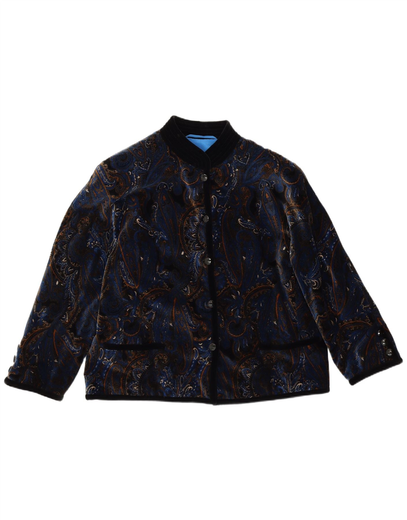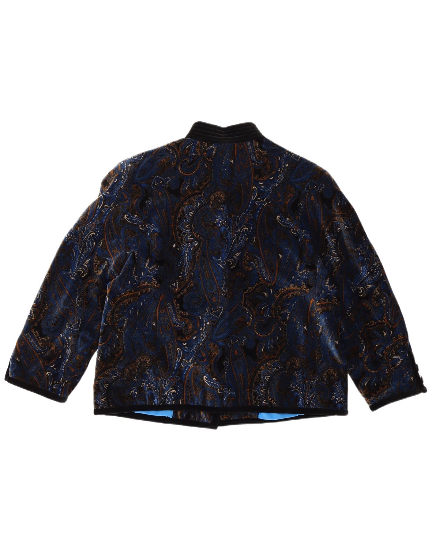 VINTAGE Womens Velvet 5 Button Blazer Jacket UK 14 Large Blue Paisley