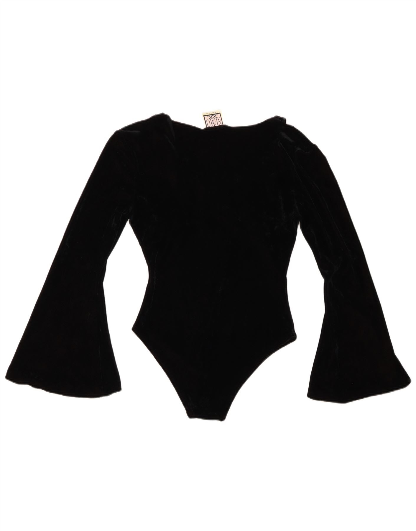 VINTAGE Womens Velvet Bodysuit UK 8 Small Black Acrylic