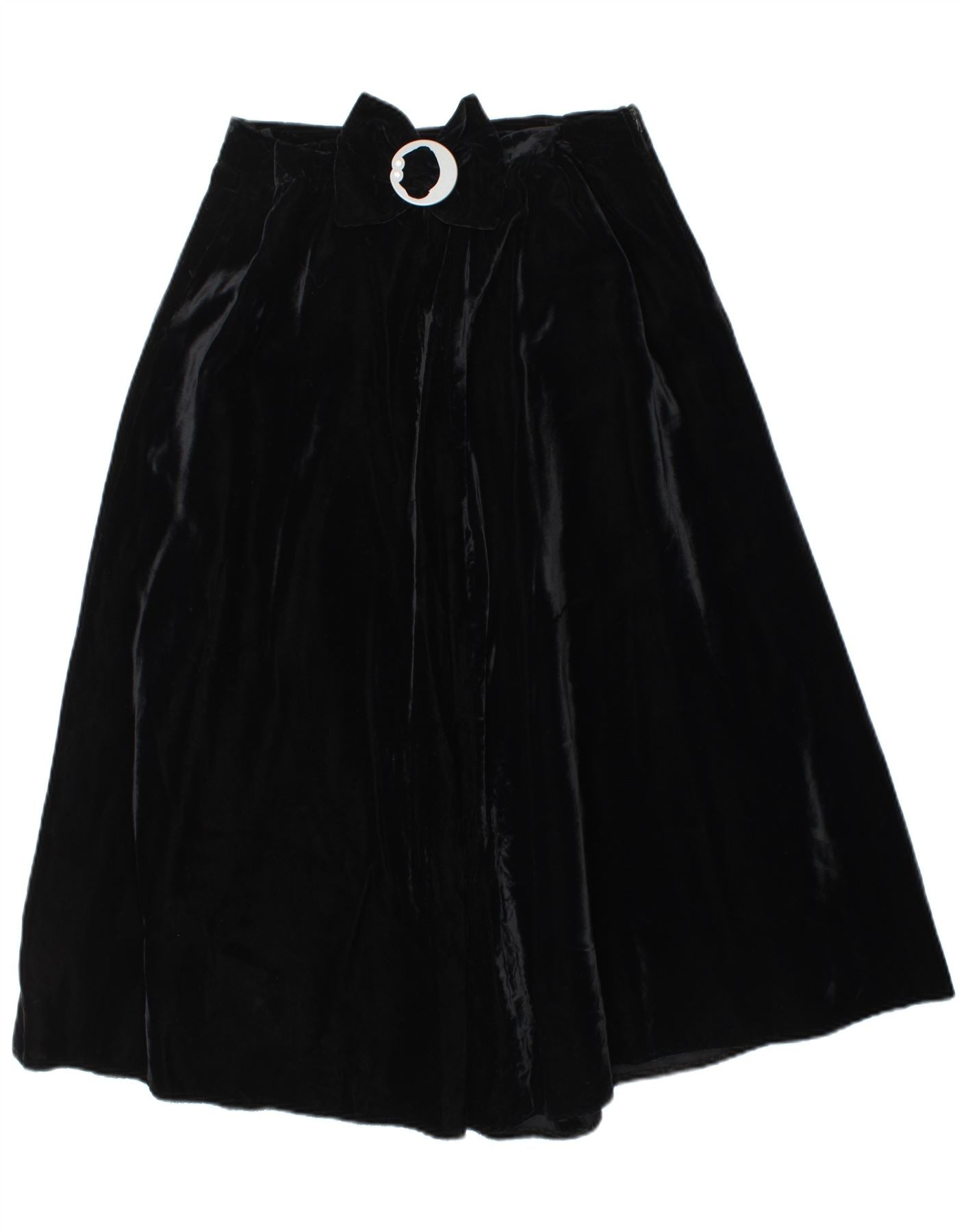 VINTAGE Womens Velvet High Waist Flared Skirt IT 44 Medium W28 Black