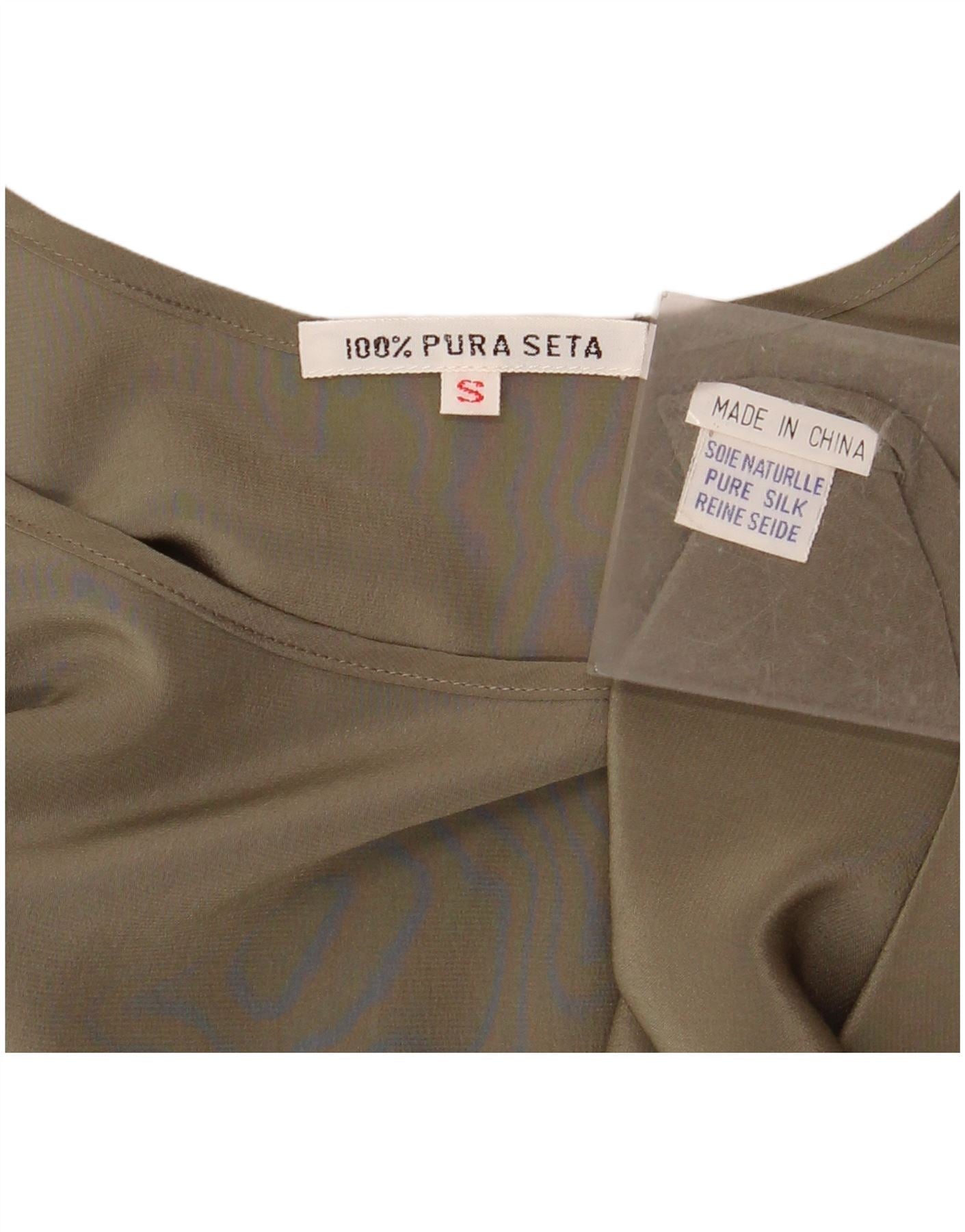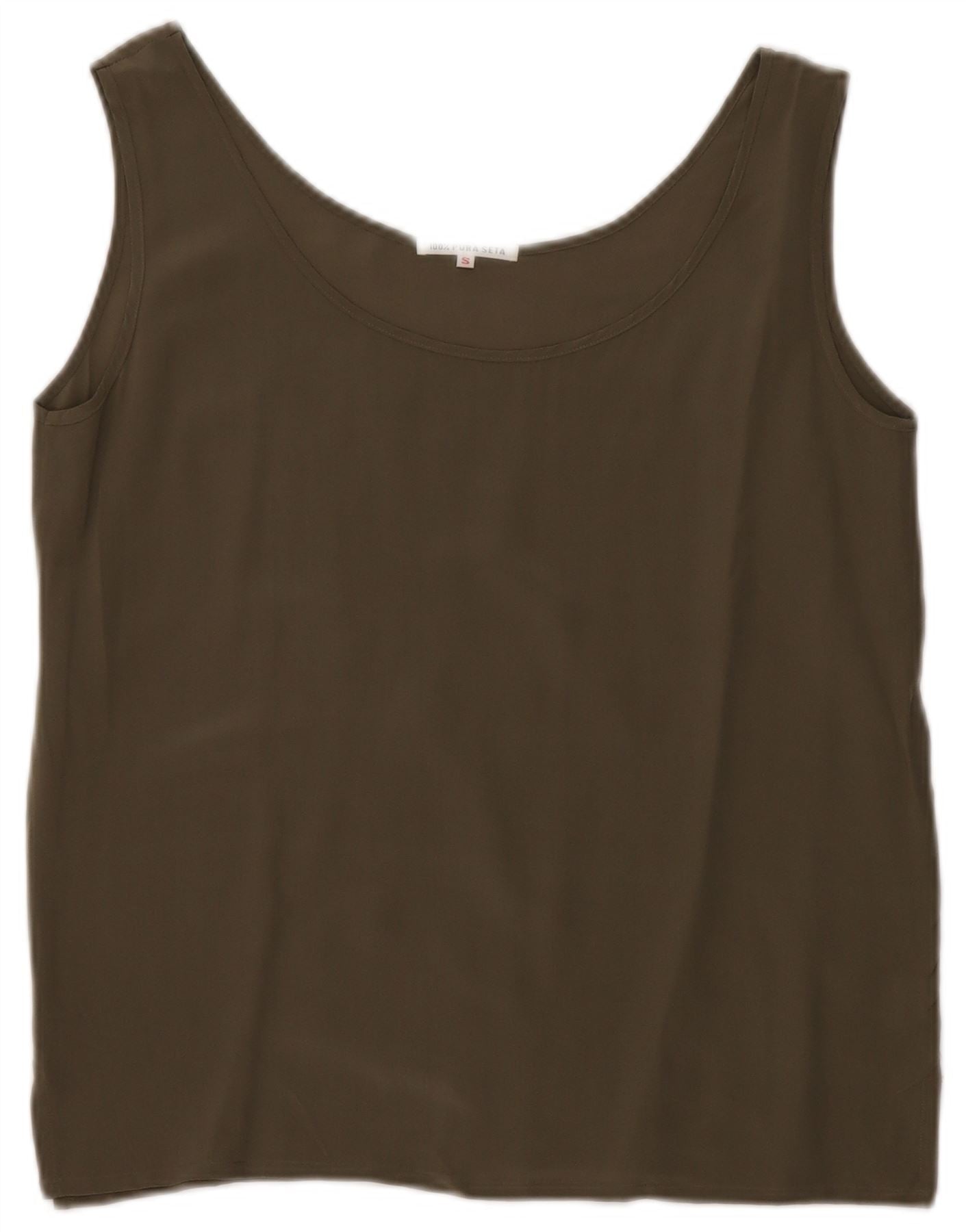 VINTAGE Womens Vest Top UK 10 Small Khaki Silk