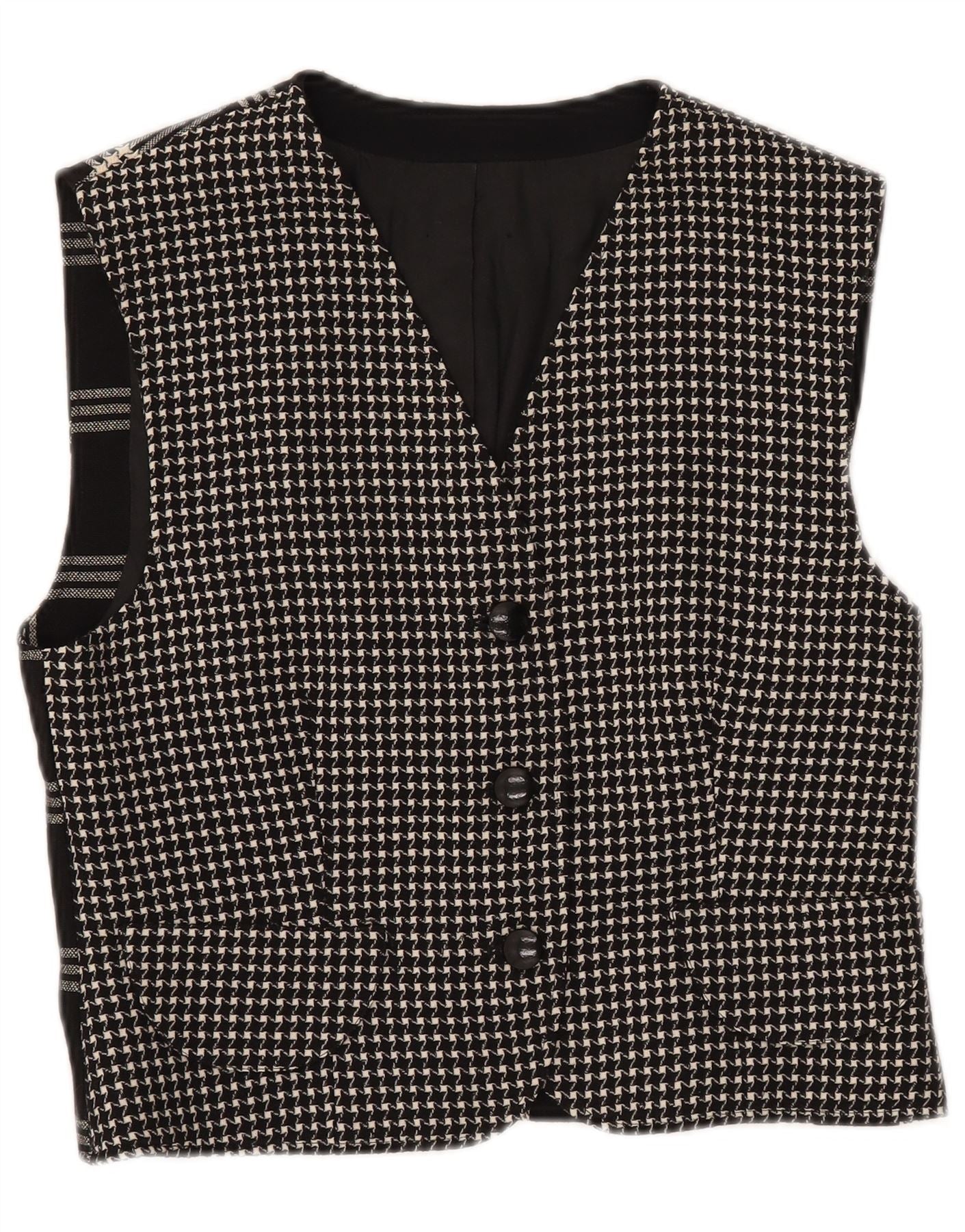 VINTAGE Womens Waistcoat UK 12 Medium Black Check