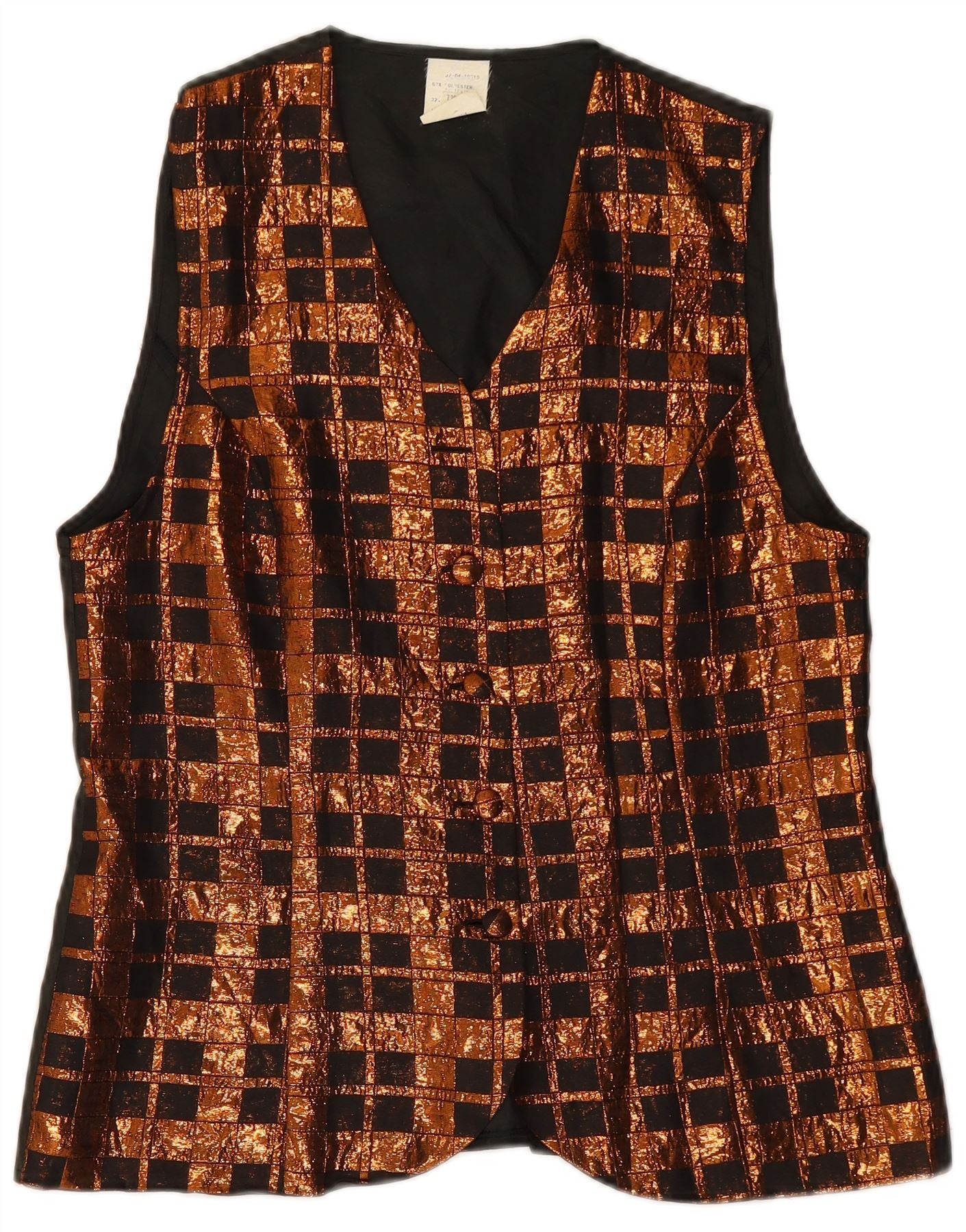 VINTAGE Womens Waistcoat UK 14 Medium Brown Check Polyester
