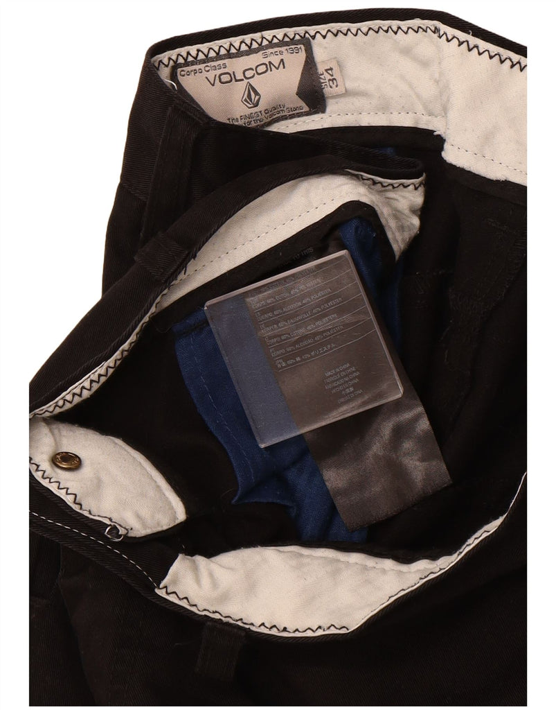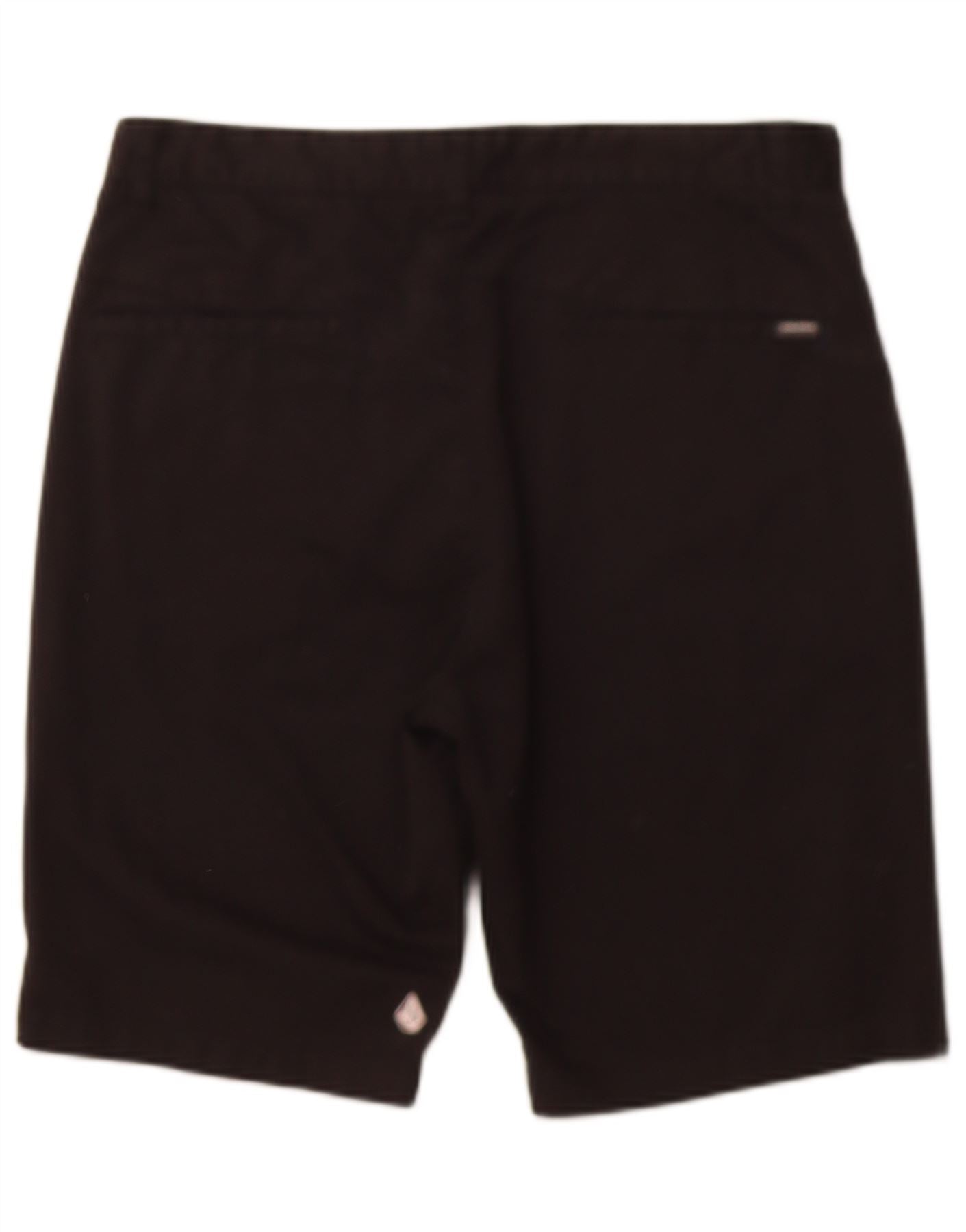 - AI Description: This Volcom mens Chino Shorts are presented in a versatile black, crafted from a comfortable cotton polyester blend fabric. The regular fit ensures a classic silhouette and ease of movement. They feature a secure button closure for a neat finish. Practical pockets add functionality, while the blended fabric provides stretch and comfort for everyday wear.