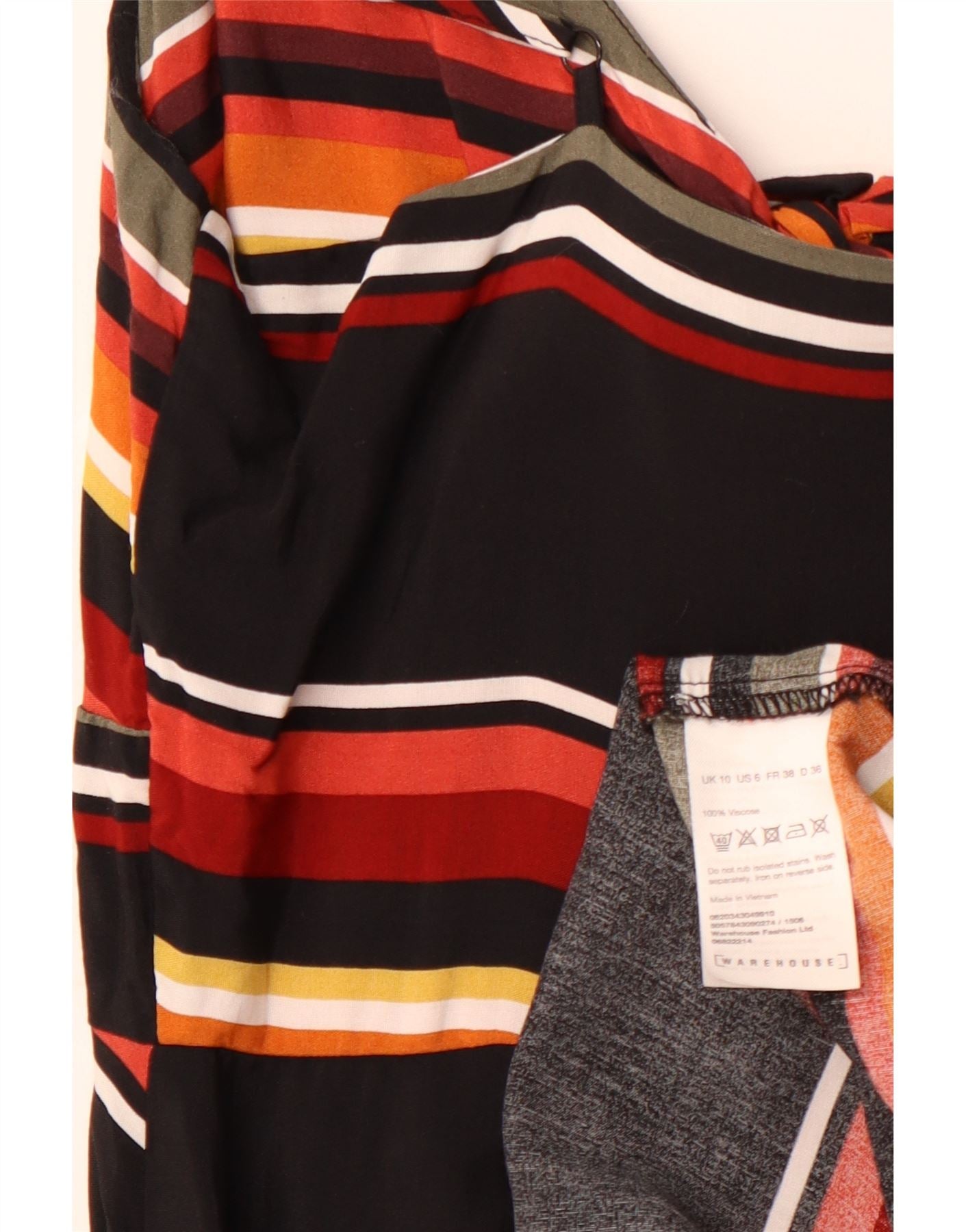 WAREHOUSE Womens Front Tie Sundress UK 10 Small Black Striped Viscose