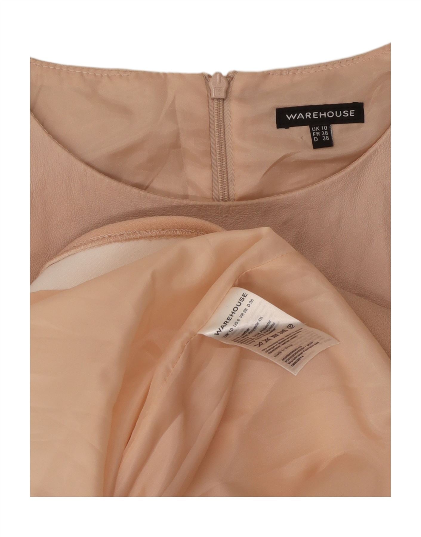 WAREHOUSE Womens Sleeveless Leather A-Line Dress UK 10 Small Beige Leather