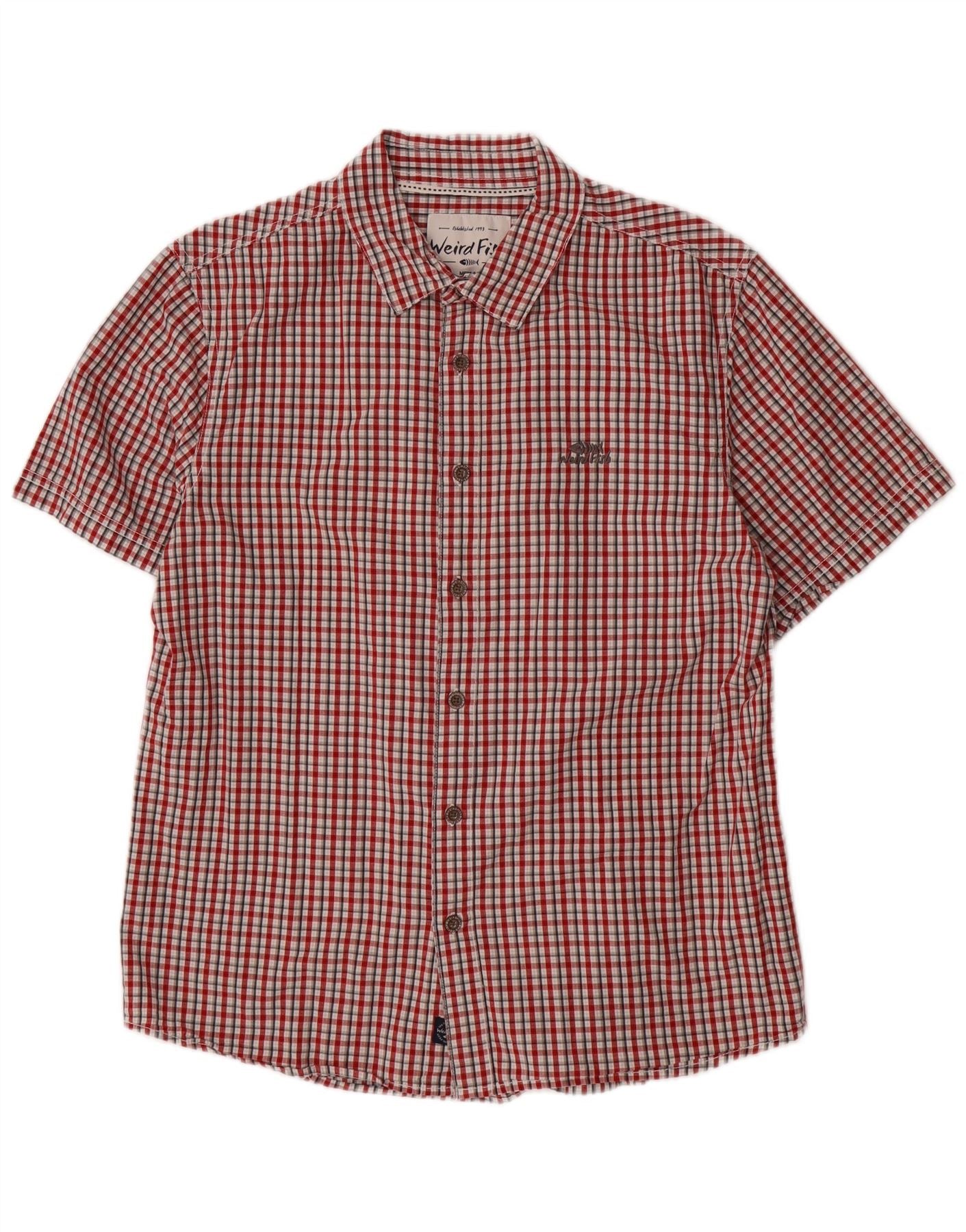 WEIRD FISH Mens Short Sleeve Shirt Medium Red Check Cotton