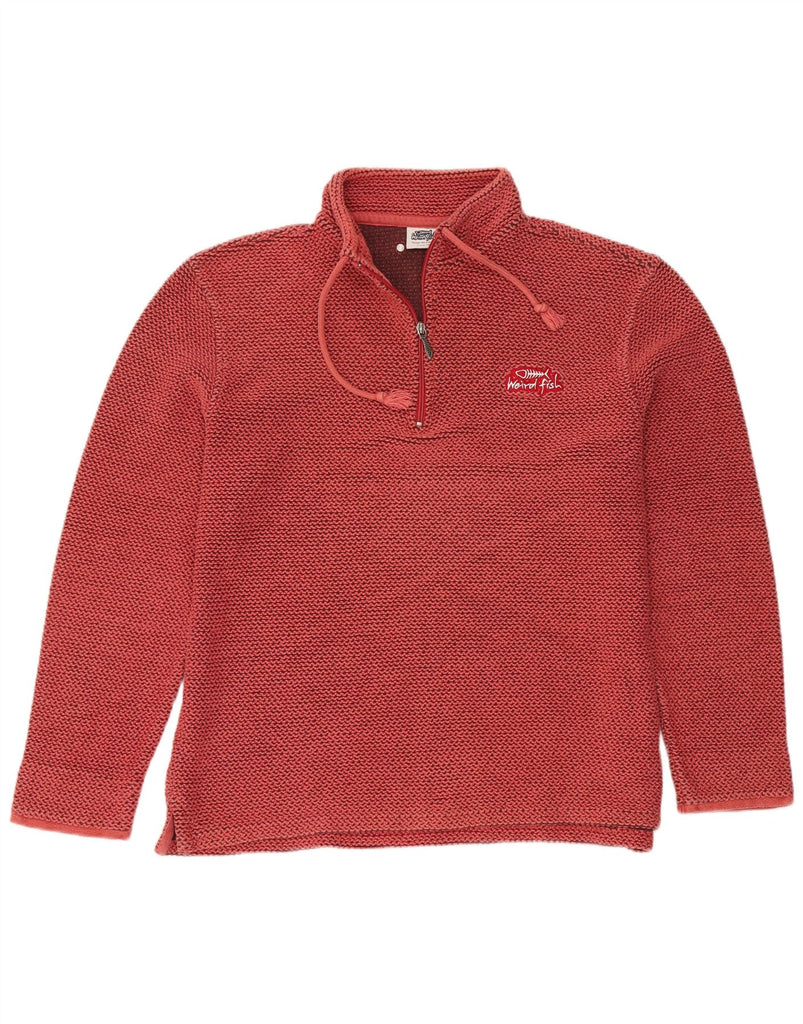 WEIRD FISH Mens Zip Neck Sweatshirt Jumper Large Red Cotton
