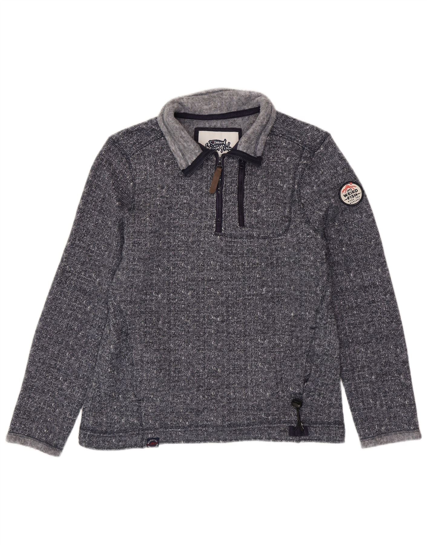WEIRD FISH Mens Zip Neck Sweatshirt Jumper Small Navy Blue Herringbone