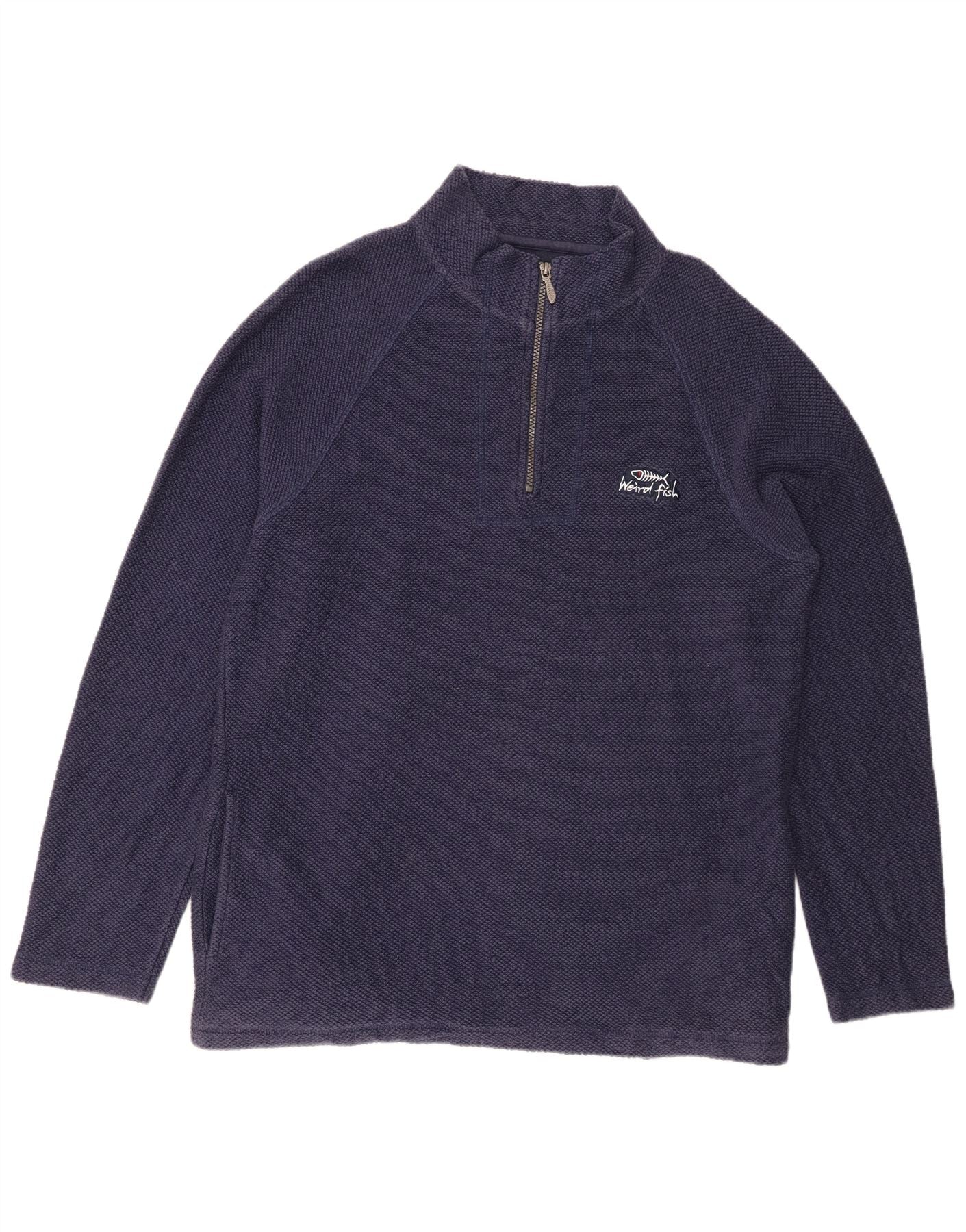 WEIRD FISH Mens Zip Neck Sweatshirt Jumper XL Navy Blue Cotton